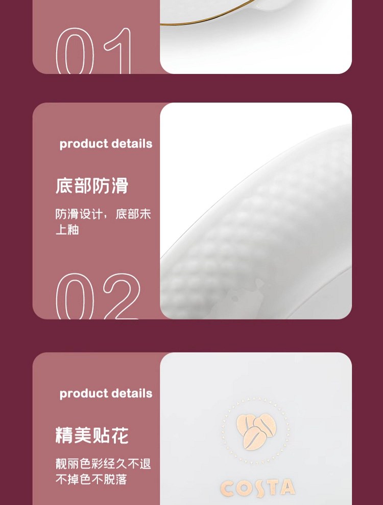 健康使用更安全Costa暖心白,温润百搭: 金色咖啡豆标点缀,