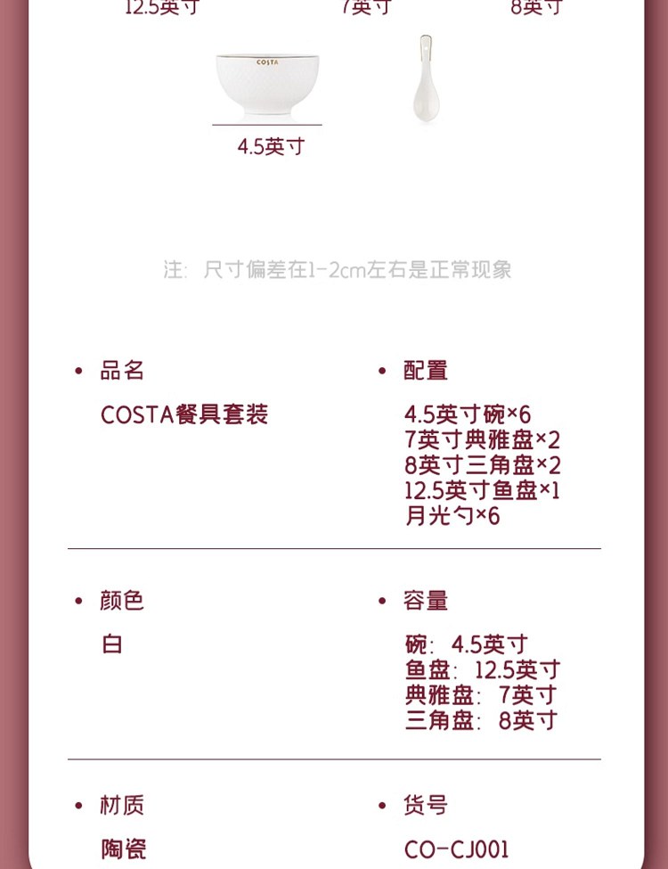 产品配置 : 4.5英寸碗*6、 7英寸典雅盘*2、