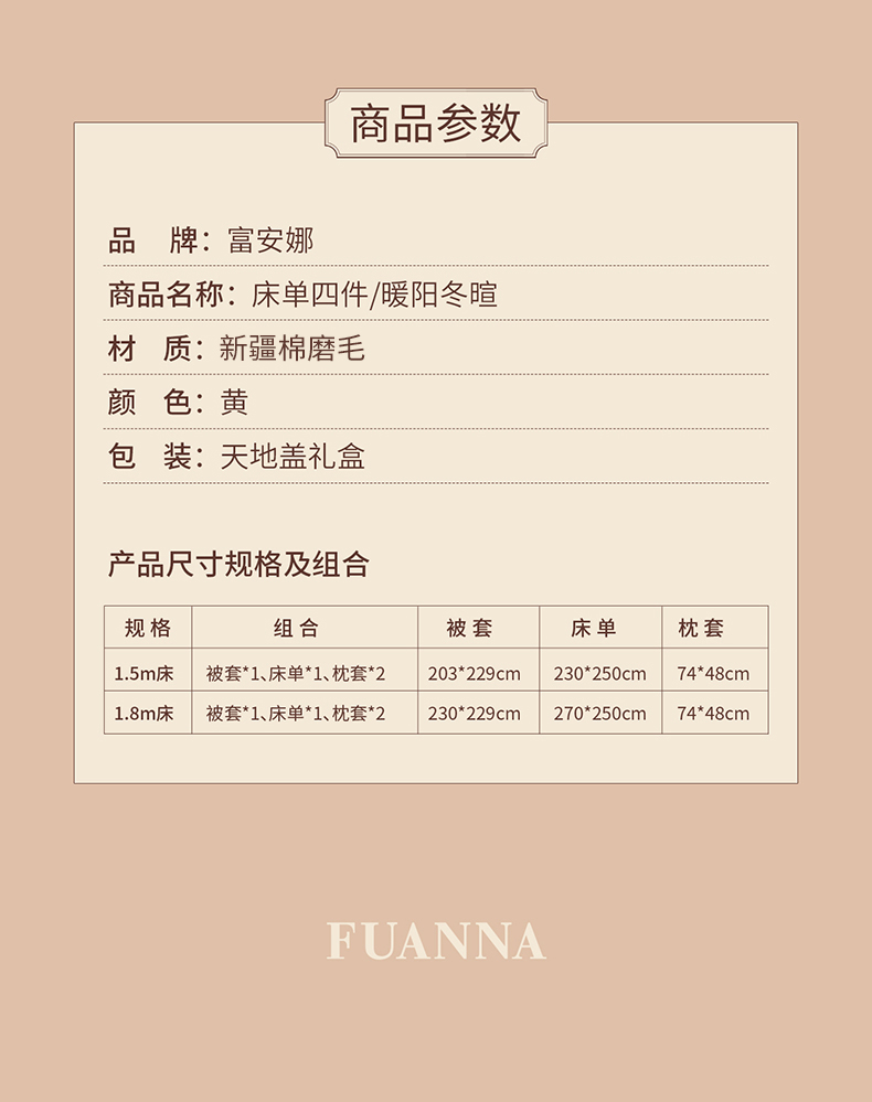 【6楼】富安娜床单四件\暖阳冬暄,牌牌价2280~2480元,活动价799~899
