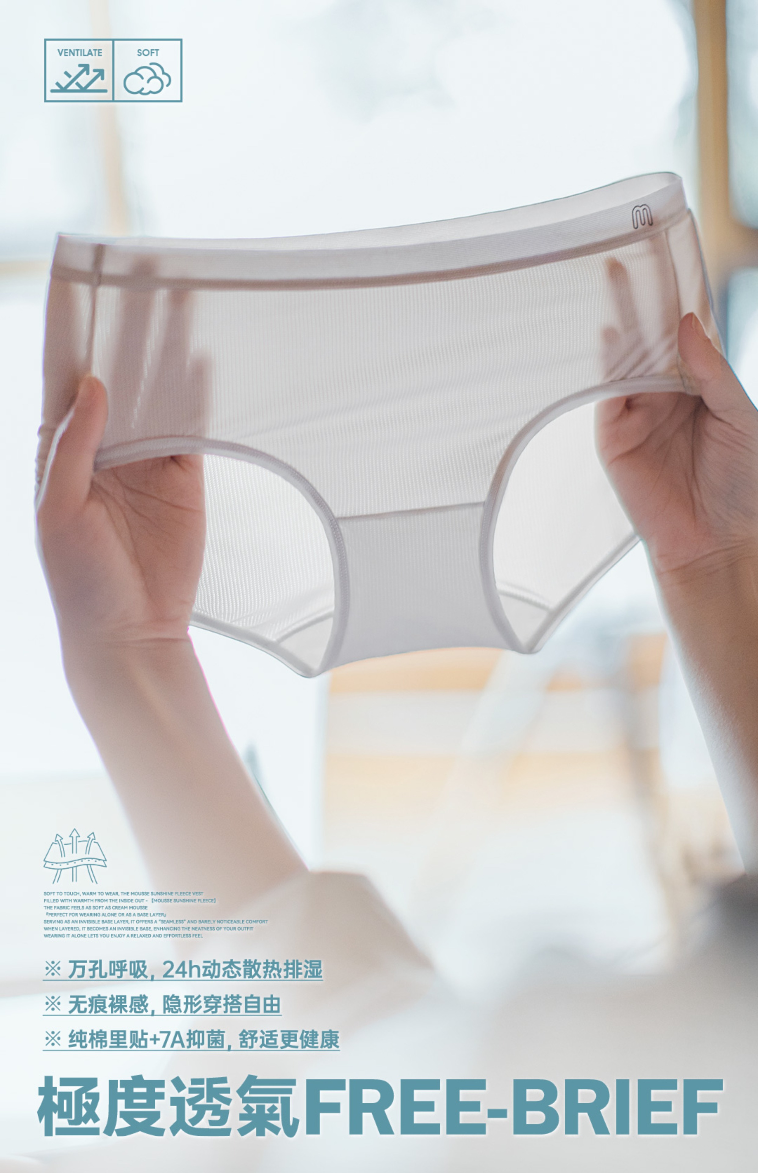 马登夏季亲肤7A级抗菌无痕不夹臀女士内裤中腰全棉透气三角短裤