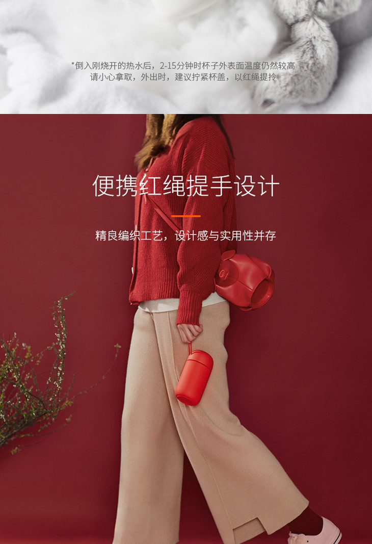 在中国传统文化中,红绳zui早是定情信物和缔结姻缘的象征,后来又逐步衍生出行运、招财以及护身、祈愿、求平安的象征意义。所以杯身上的小红绳虽然只是一个简简单单的提手拉环,却在原本冰冷的工业产品中注入了浓浓的中国风和人情味。带着这样的杯子,绝对会让整个人的精气神连带运势都好了起来呢!除了颜值能打、好运加持以外,九阳小红绳保温杯在各部分材质的选择方面,也绝对下了功夫。更可爱的是,仔细一看,杯盖内部还写着“多喝热水”四个字。非常贴心了哈哈哈~