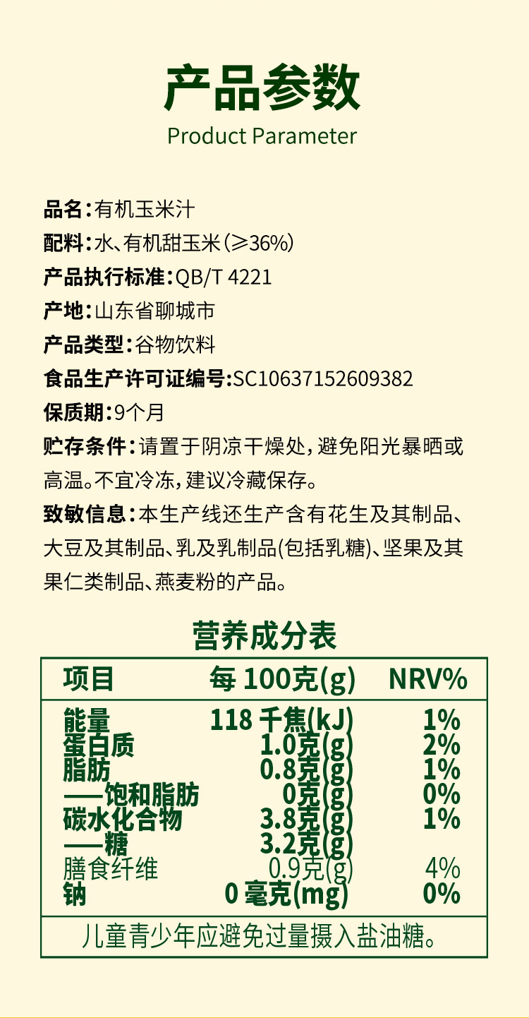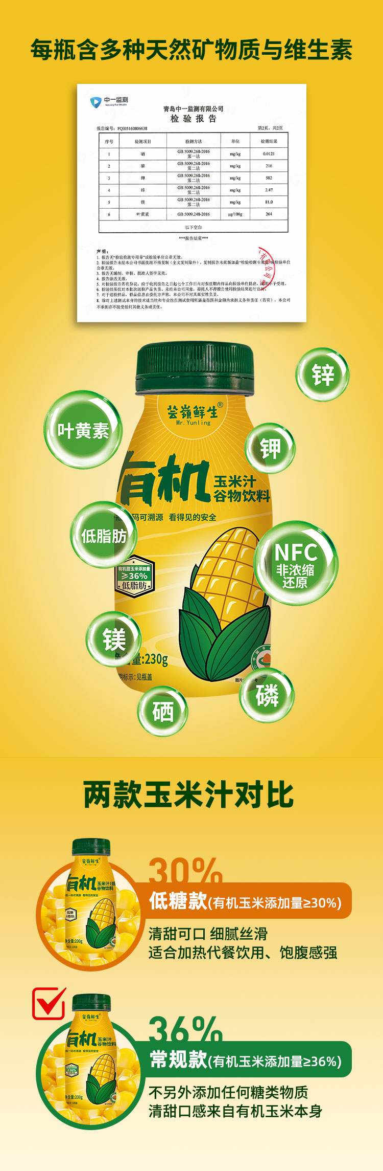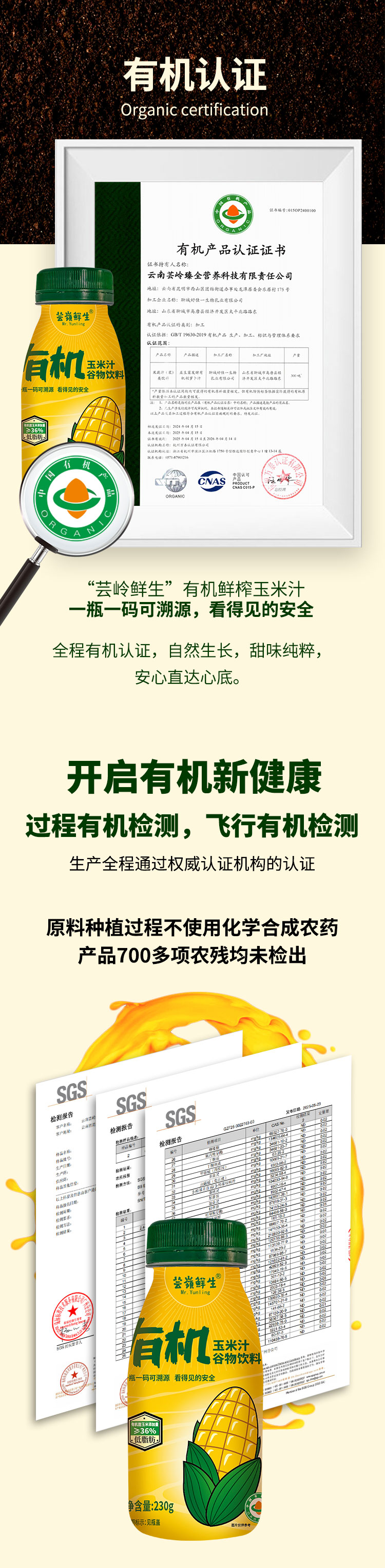 芸岭鲜生有机鲜榨玉米汁(无糖 )230g*10/箱 (全国配送偏远地区除外)