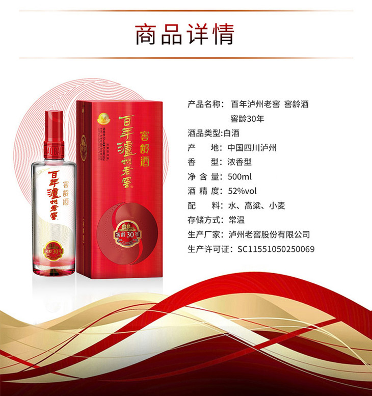 【泸州老窖官方形象店】52度百年泸州老窖窖龄酒30年 500ml 浓香型白酒