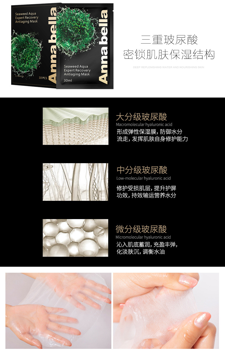 【一般贸易中文标】泰国进口安娜贝拉Annabella海藻面膜黑金版10P