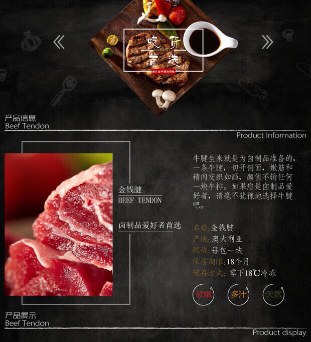 澳洲谷饲金钱腱心 来自零口蹄疫零疯牛病的国度,肉质紧实,丰富牛筋 好吃有嚼劲