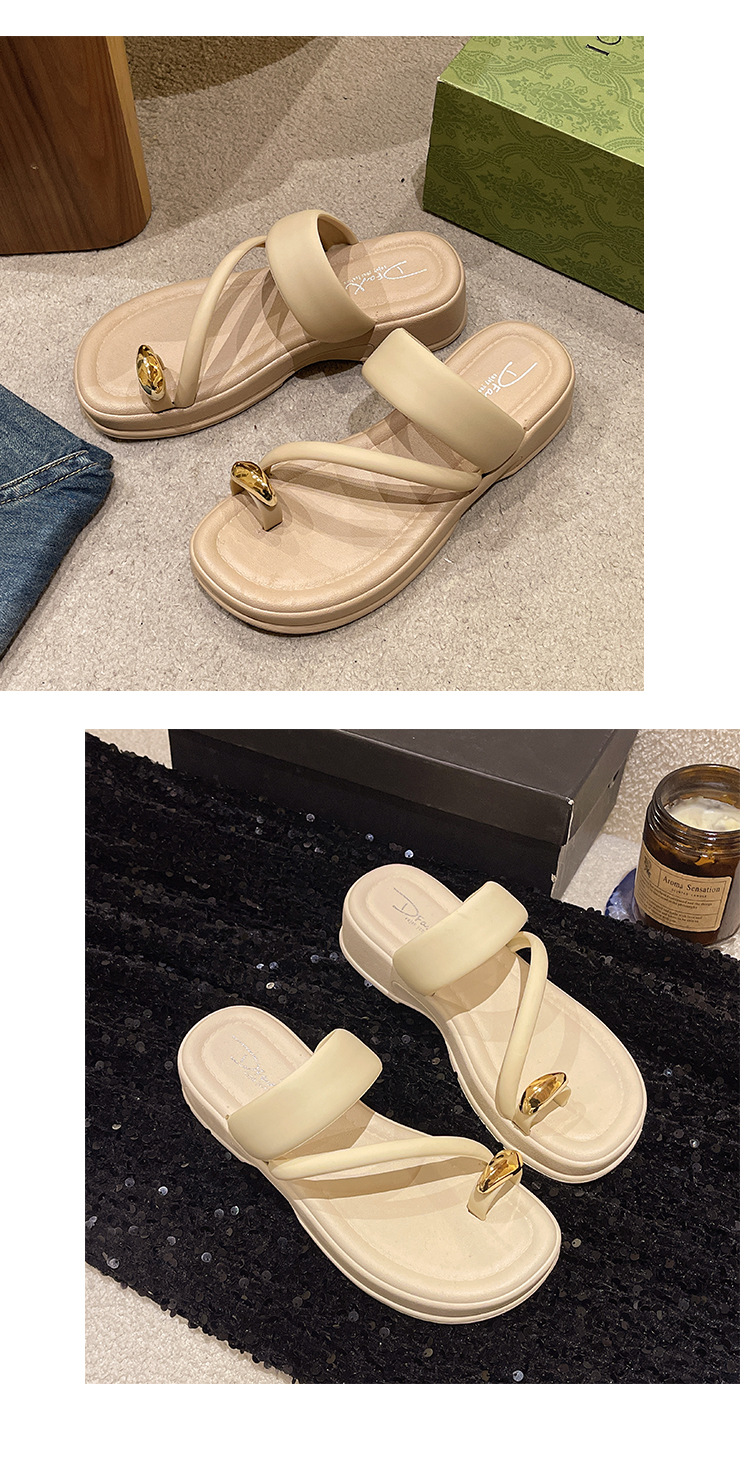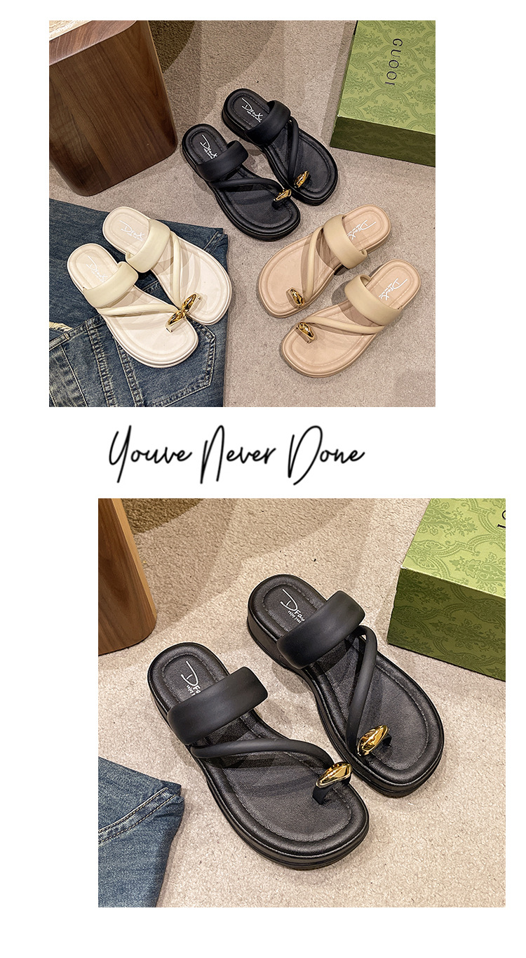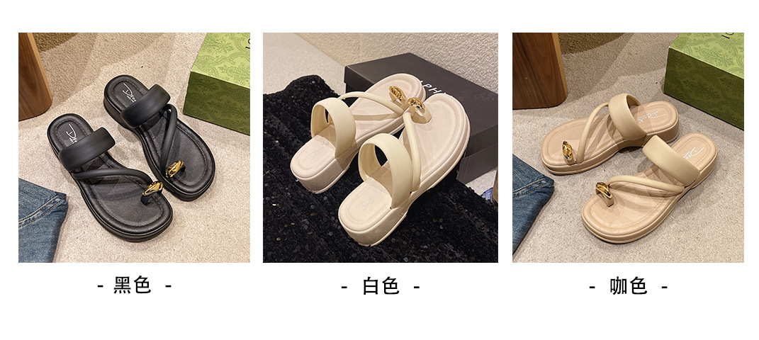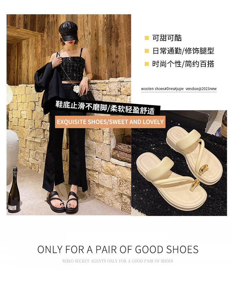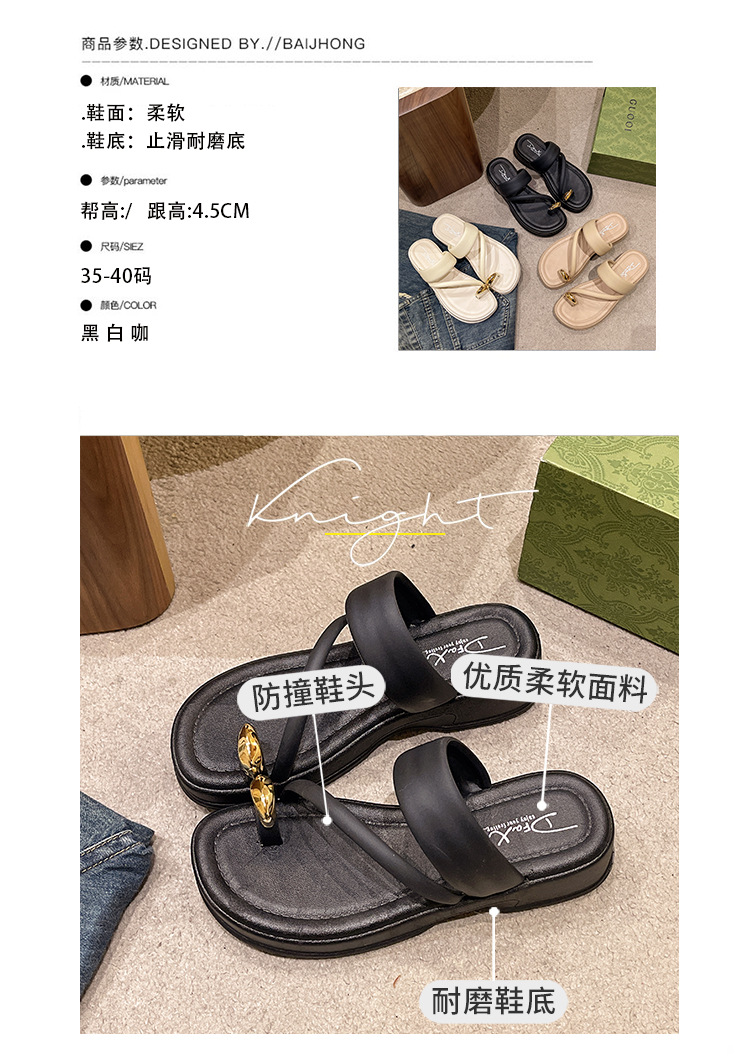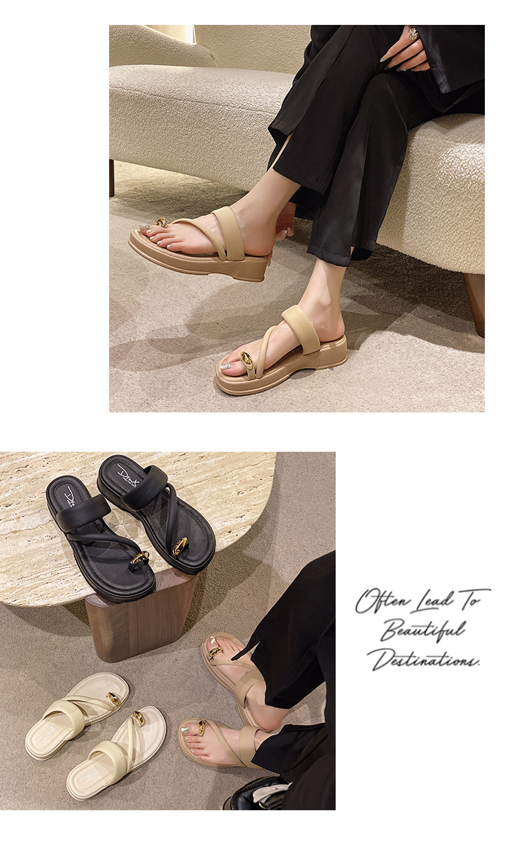 【夏季时尚厚底套趾拖鞋】套趾拖鞋女夏季外穿2025新款,防撞鞋头耐磨鞋底,时尚厚底法式配裙子休闲夹脚沙滩凉拖QQ