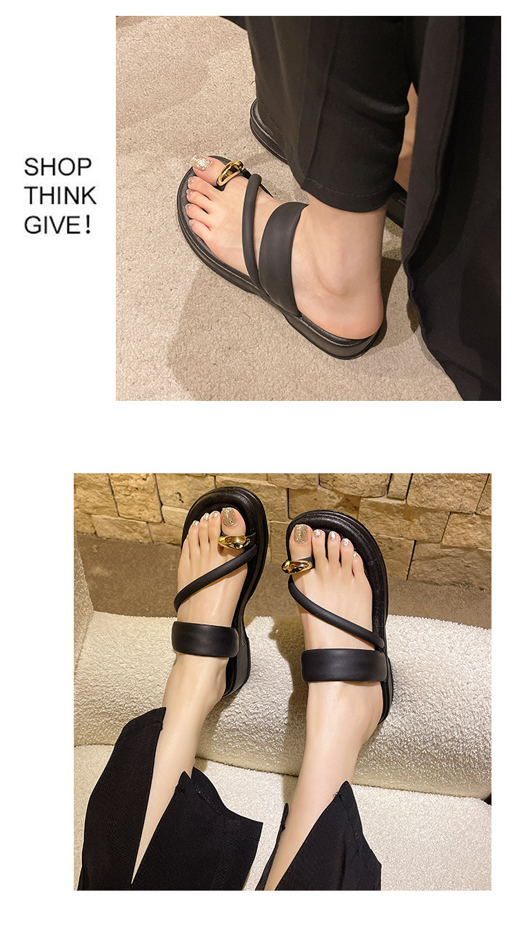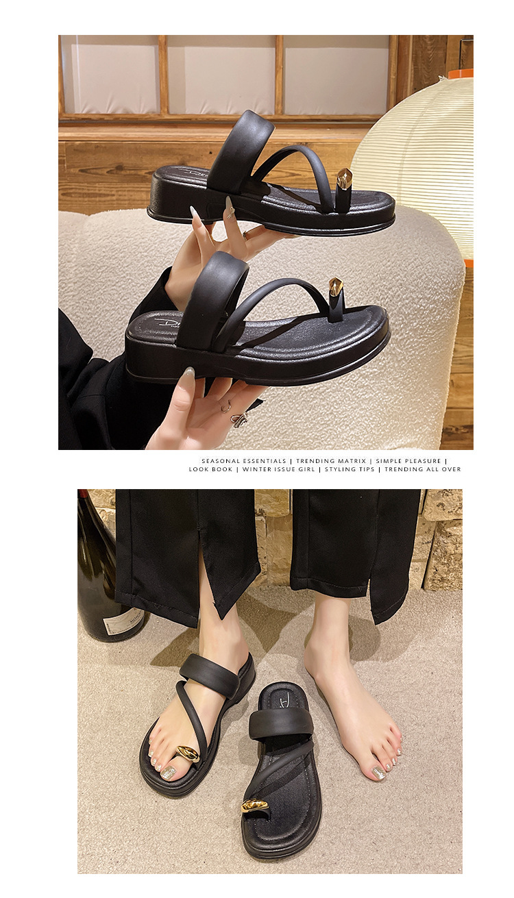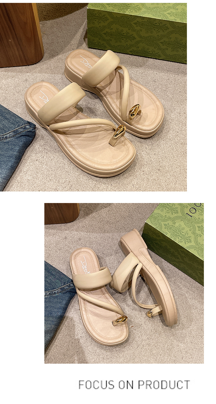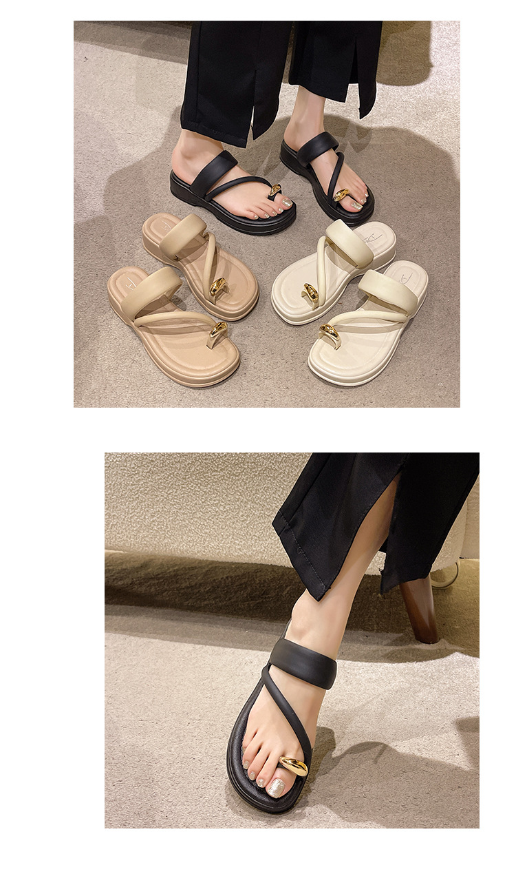 【夏季时尚厚底套趾拖鞋】套趾拖鞋女夏季外穿2025新款,防撞鞋头耐磨鞋底,时尚厚底法式配裙子休闲夹脚沙滩凉拖QQ