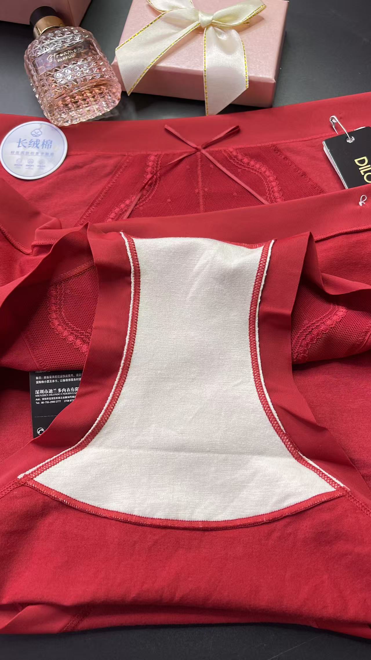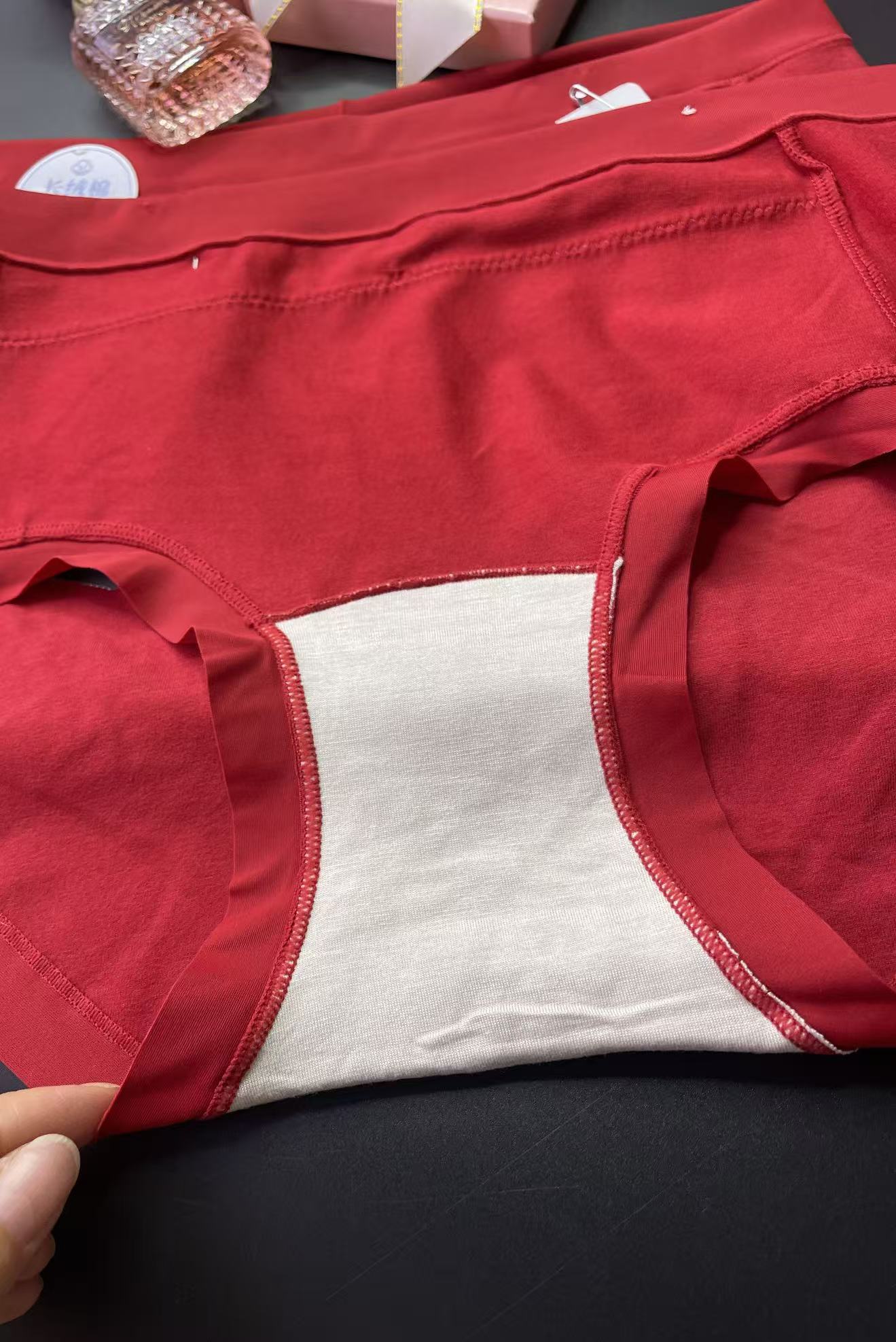 喜庆红色长绒棉中腰内裤舒适透气1295145-46