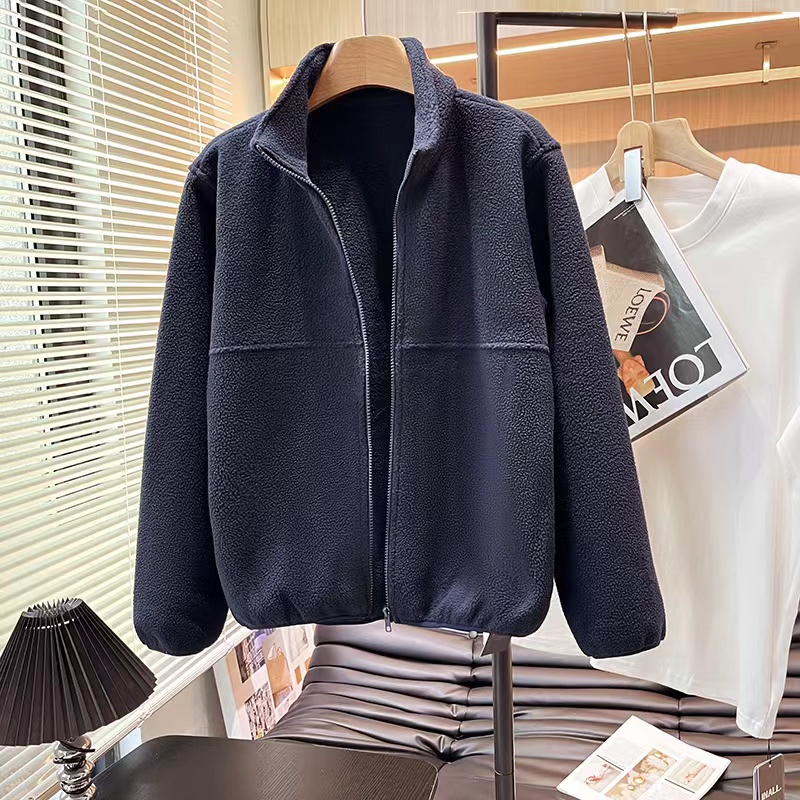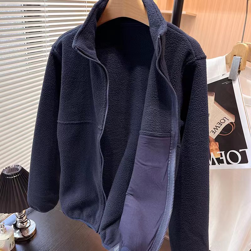 美式复古羊羔毛立领外套bm风修身显瘦百搭开衫上衣女