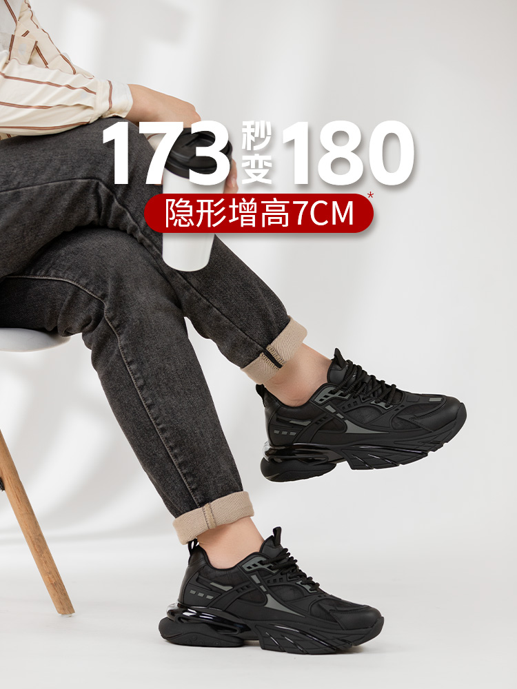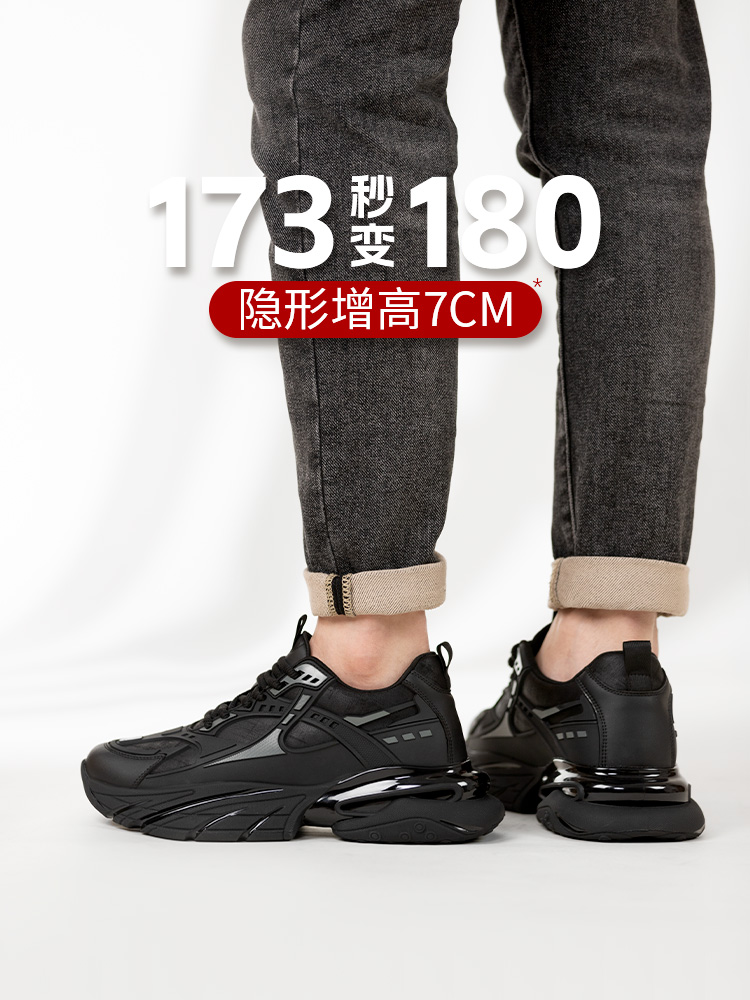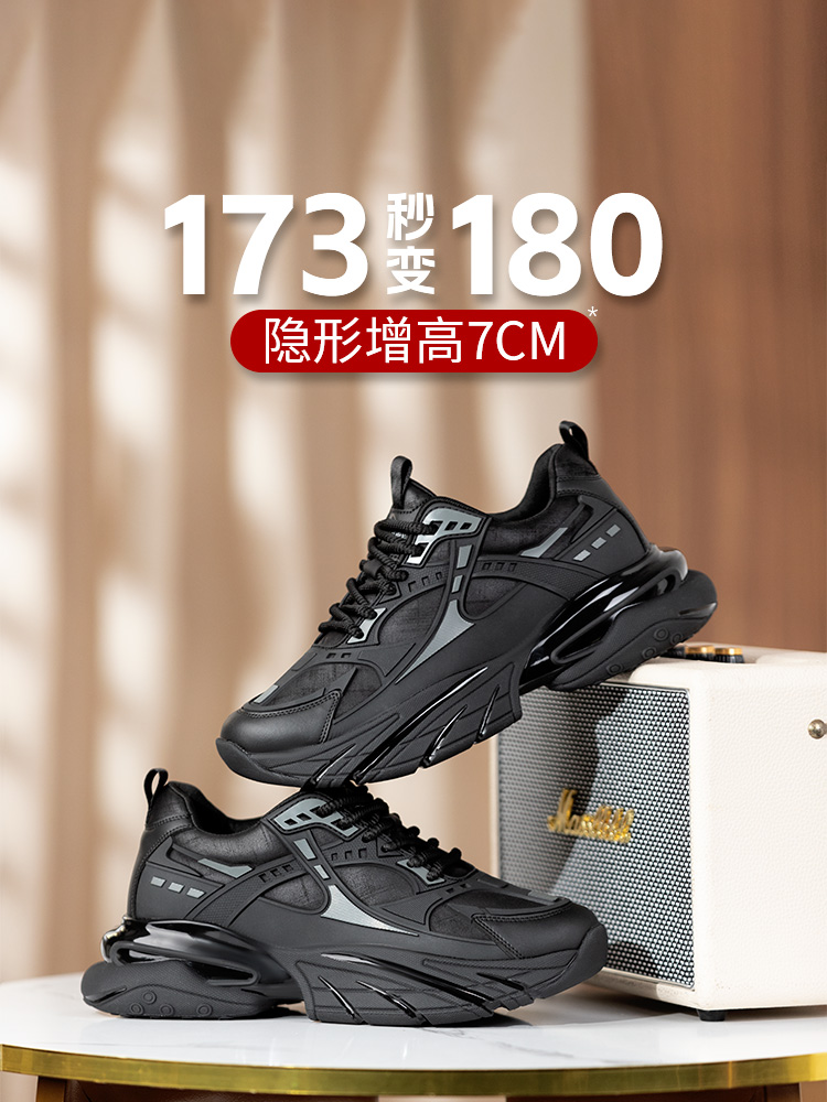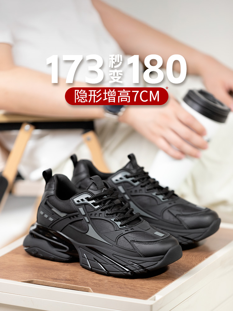 舒乐高鞋子男鞋老爹鞋男款内增高7cm休闲鞋黑武士运动鞋秋冬款