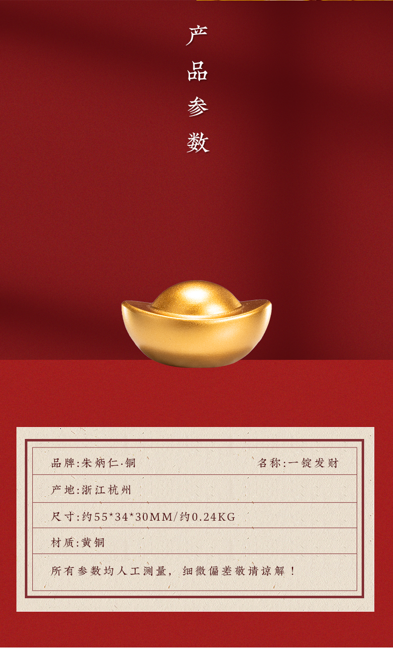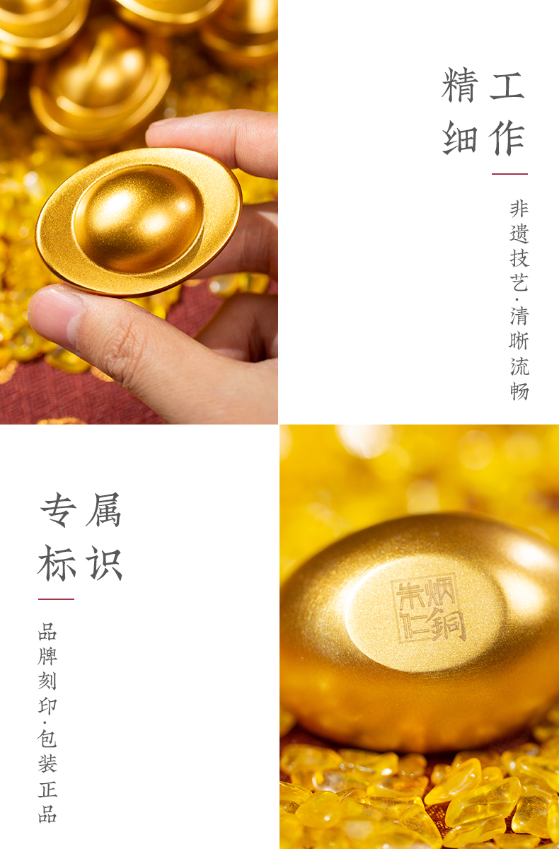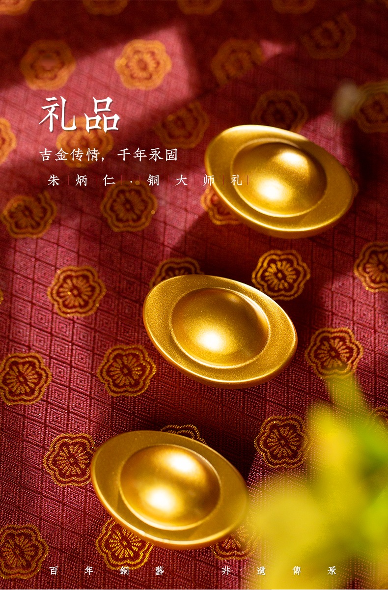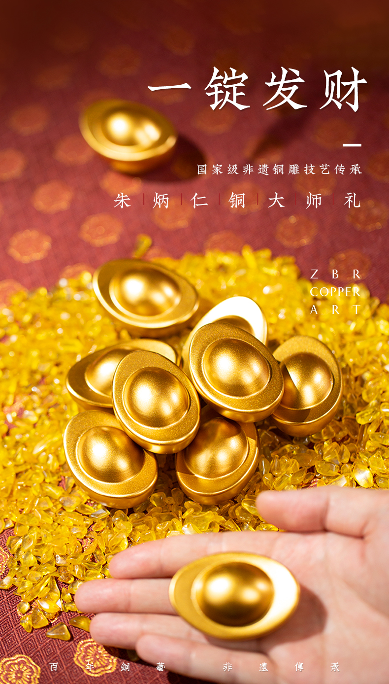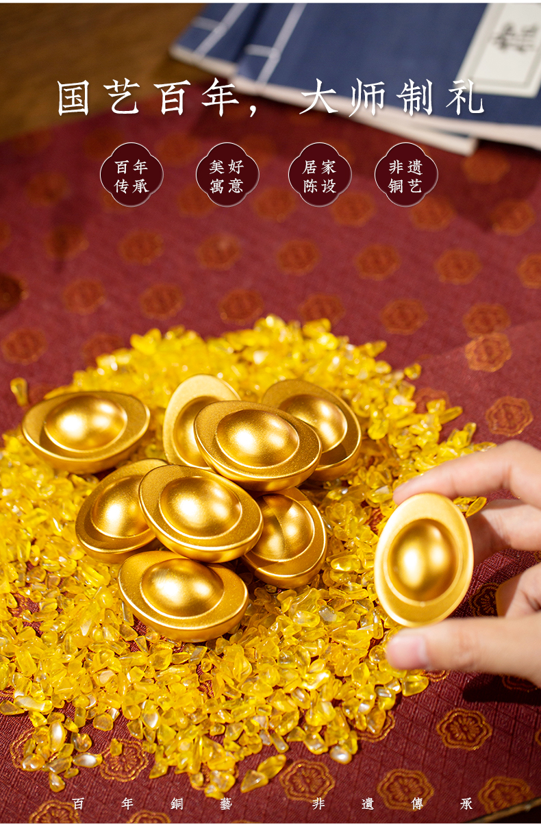 【6F】朱炳仁铜金元宝铜摆件桌面客厅玄关礼品 一锭发财元宝一个