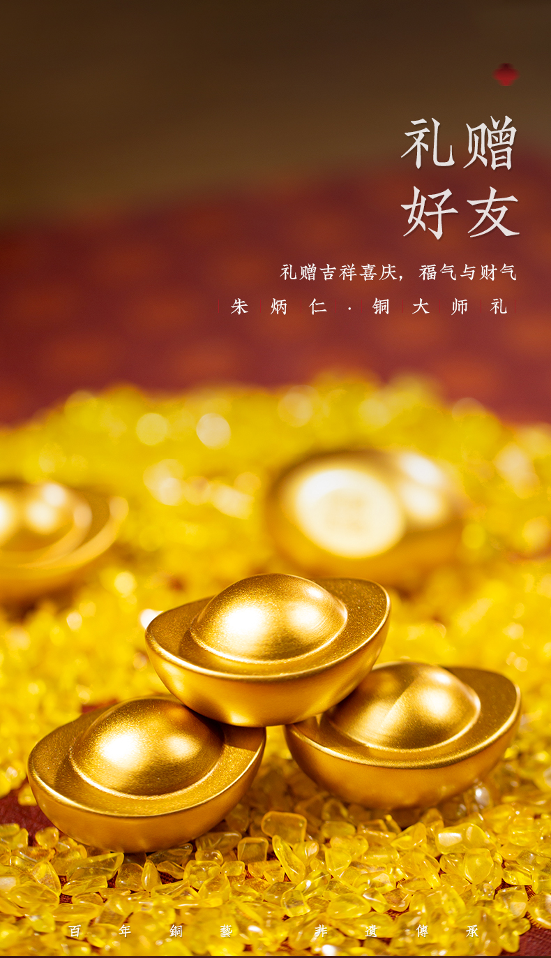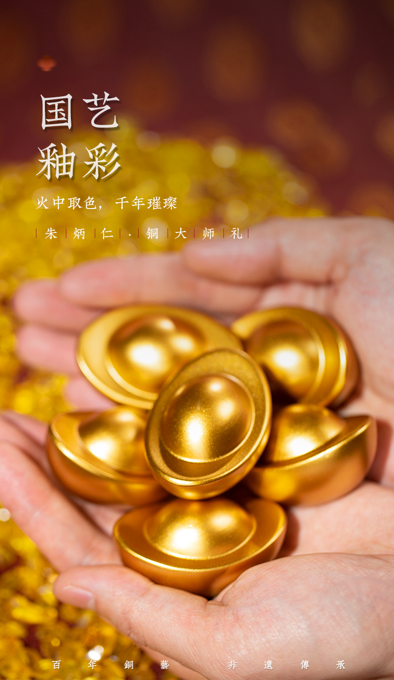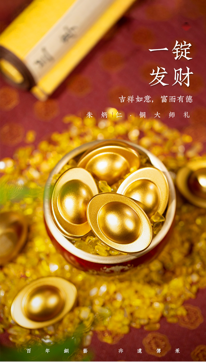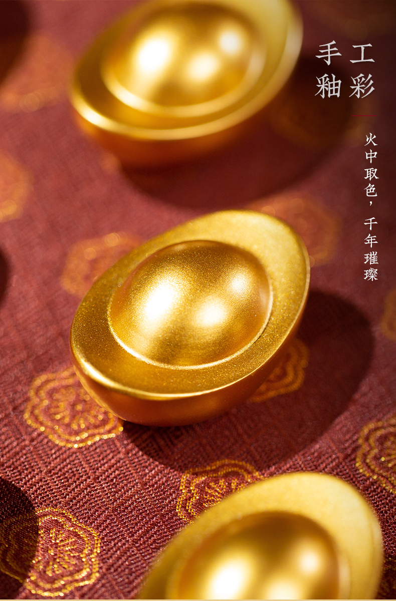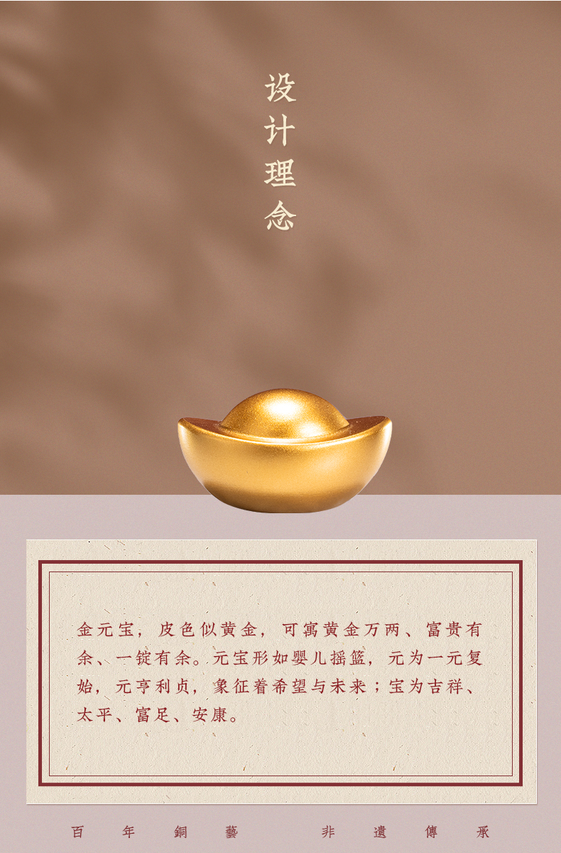 【6F】朱炳仁铜金元宝铜摆件桌面客厅玄关礼品 一锭发财元宝一个