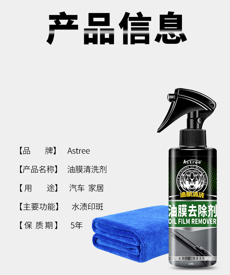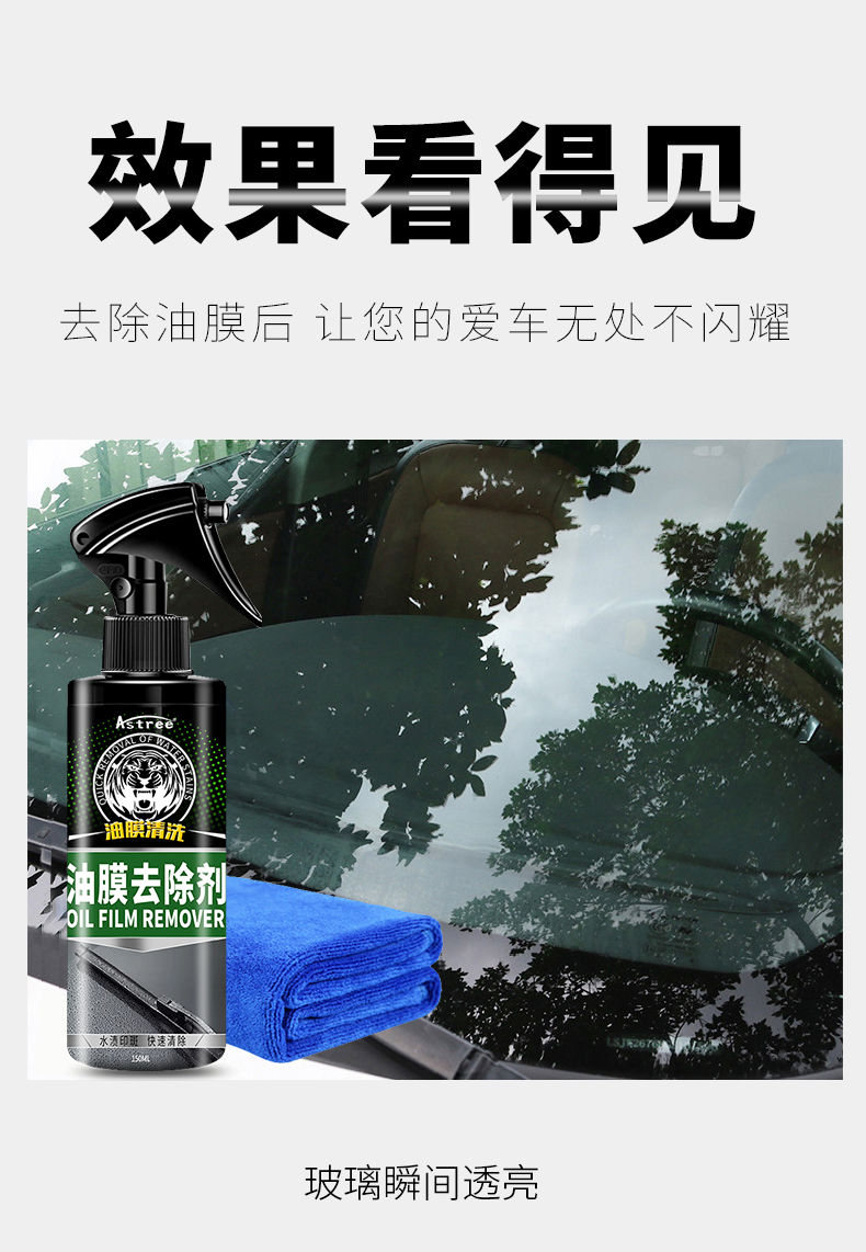 【顽固油膜 水渍 树胶 黑点】Astree 汽车油膜去除剂 挡风玻璃车窗油污清洁剂 150ml/瓶