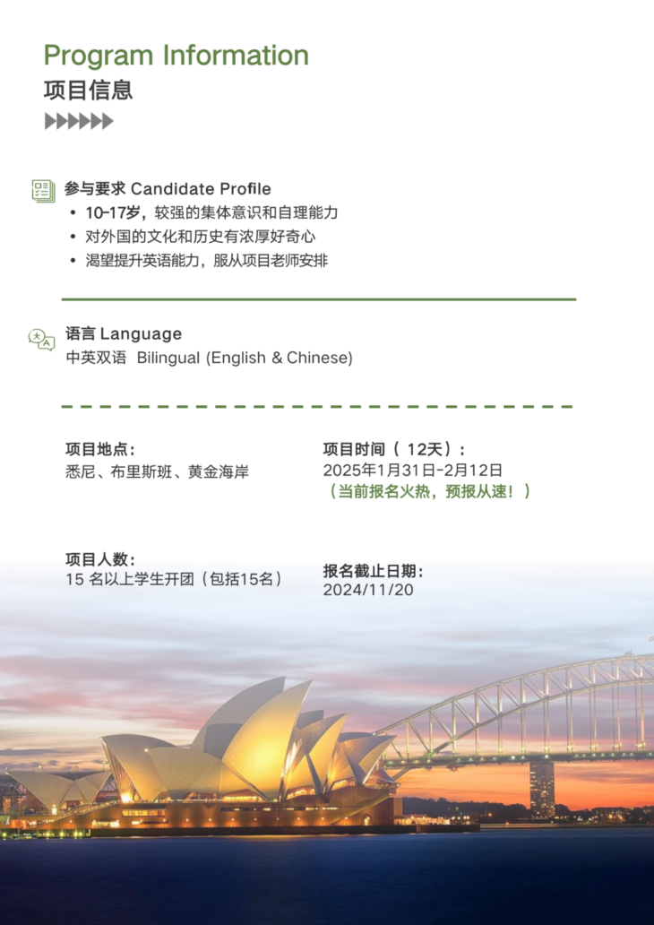 【寒假单飞】澳洲全真插班悉尼墨尔本布里斯班,北京上海出发|12~18岁单飞