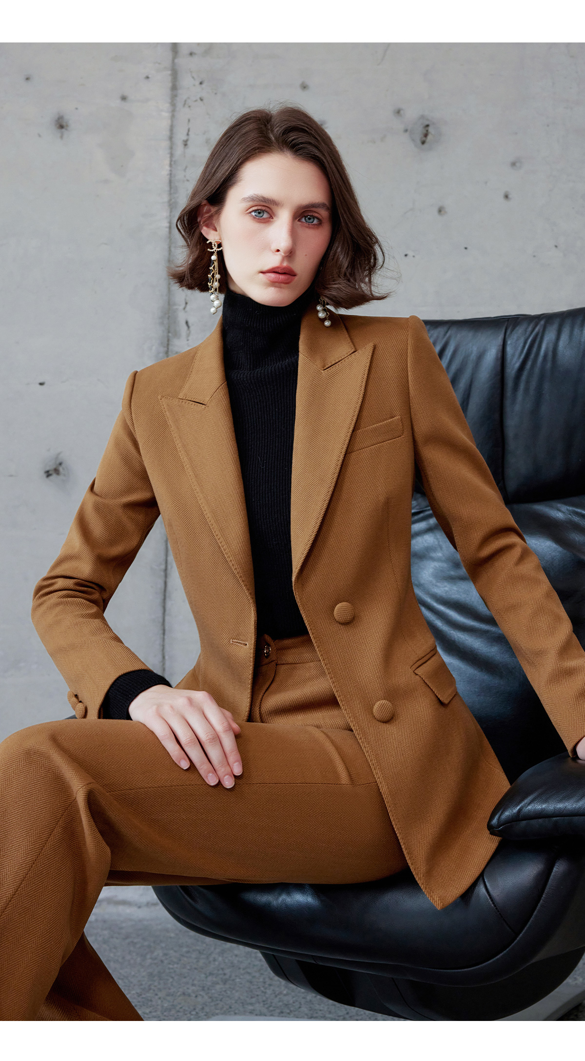 AD羊毛西装套装女2025新款气质通勤商务职业装人字纹西服正装