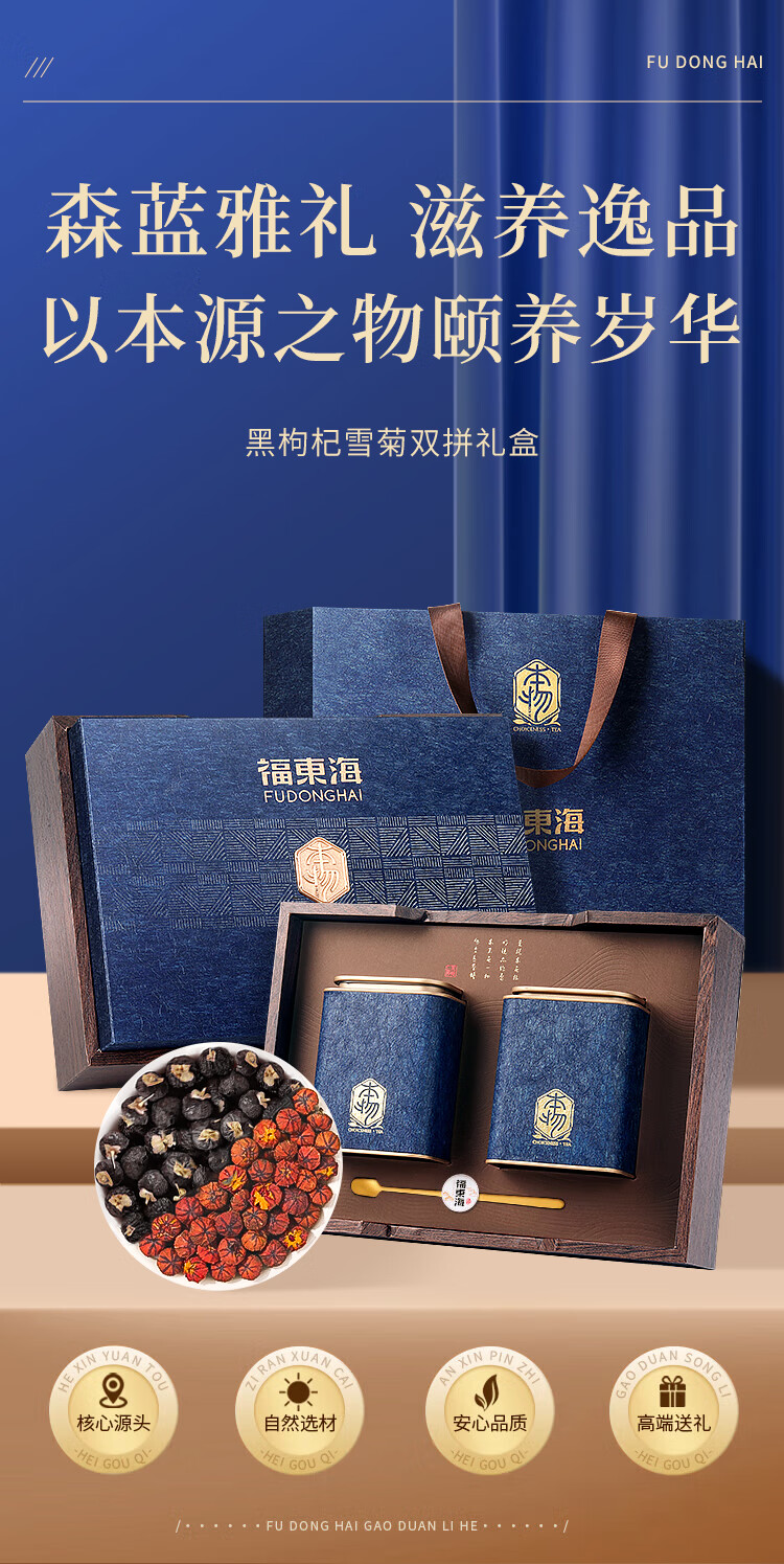 福东海 黑枸杞雪菊双拼礼盒290克 青海牛头果 送长辈父母礼品