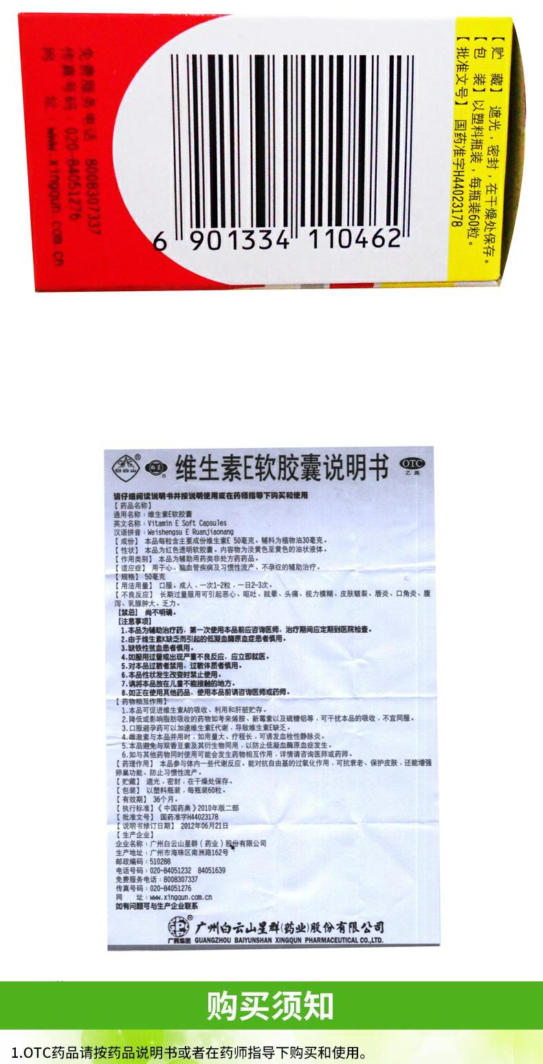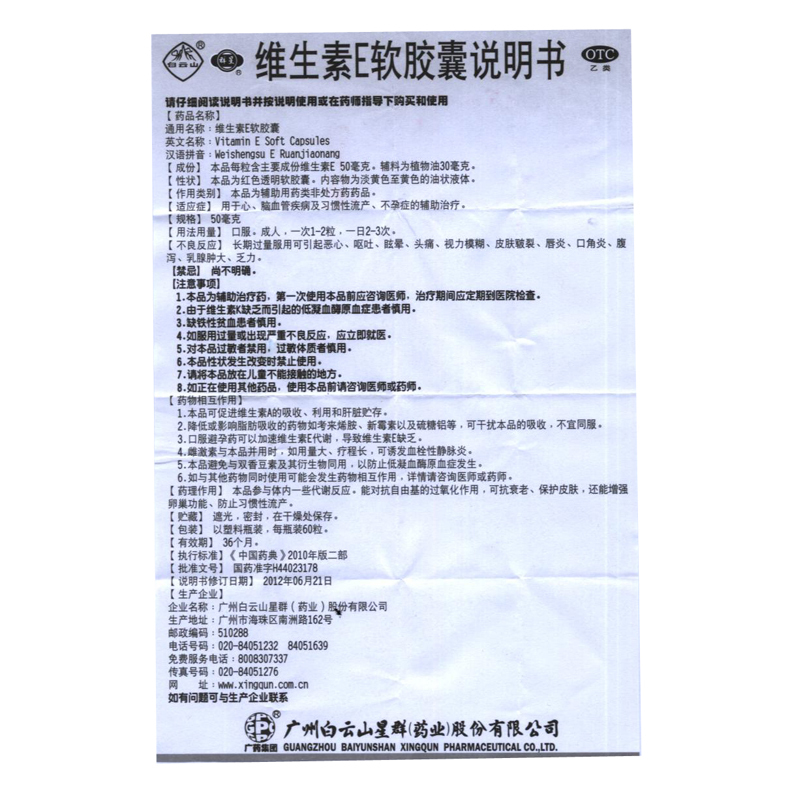 白云山 星群 维生素E软胶囊50毫克*60粒心脑血管习惯性流产不孕症