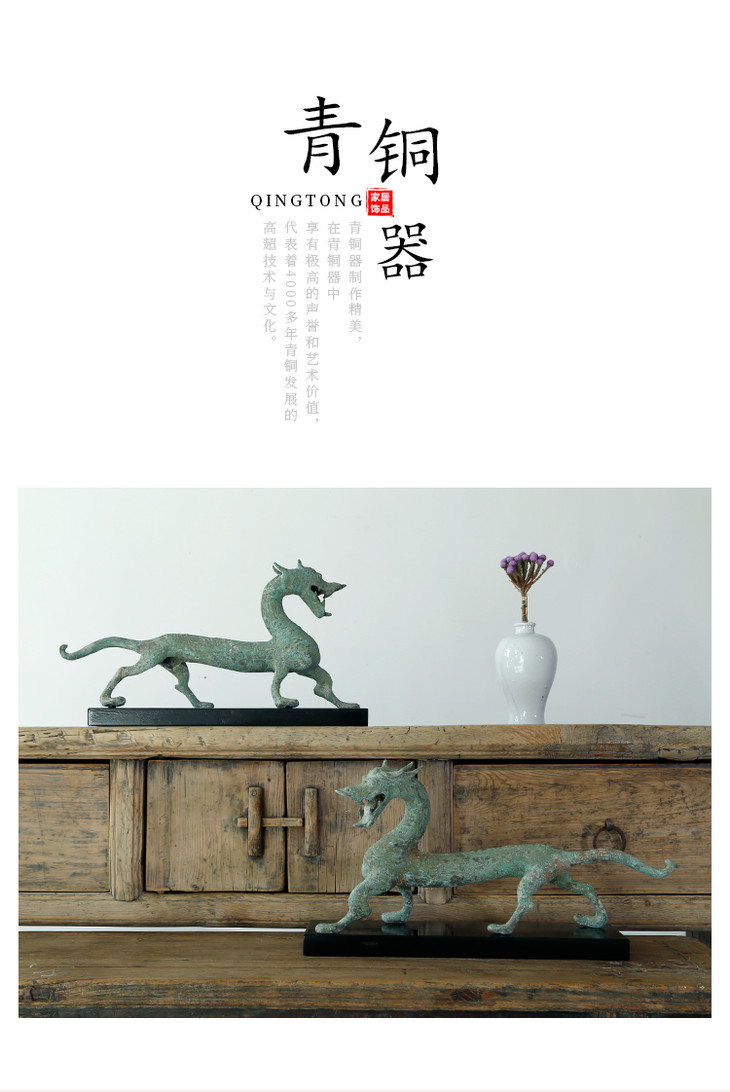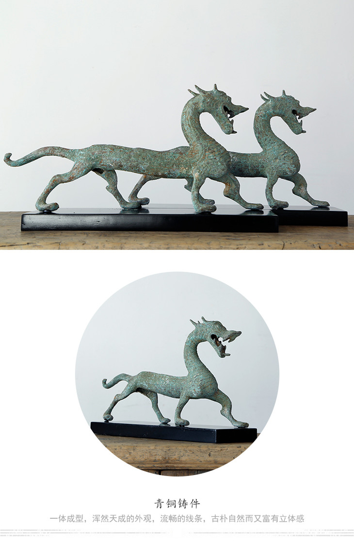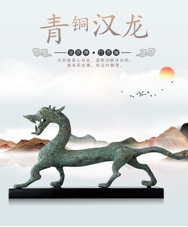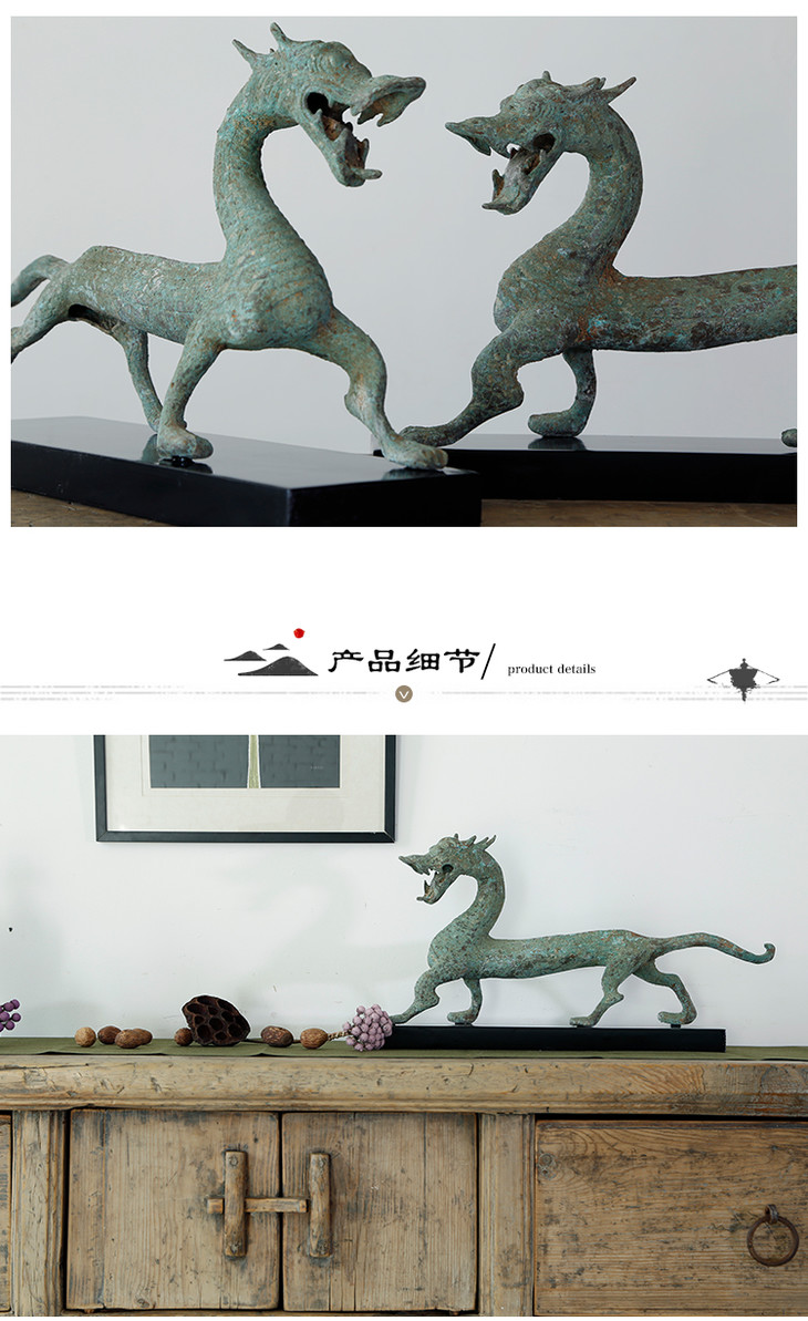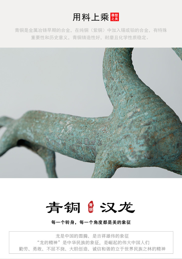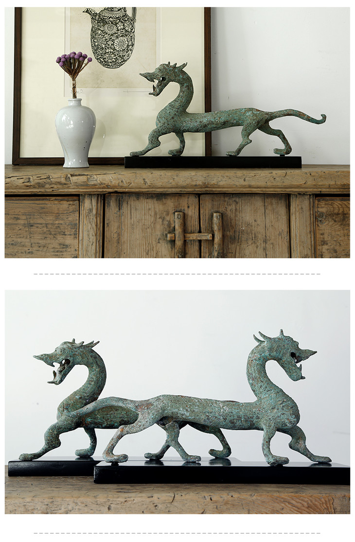 仿古青铜汉龙加托纯铜工艺品生肖龙中式软装饰品