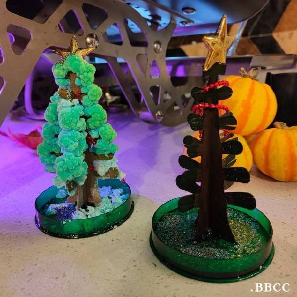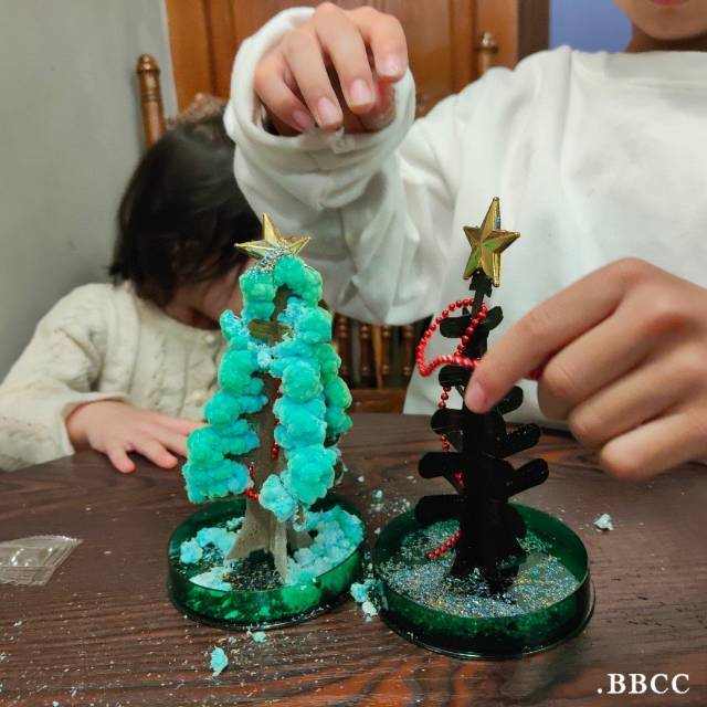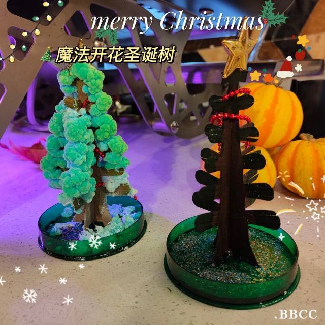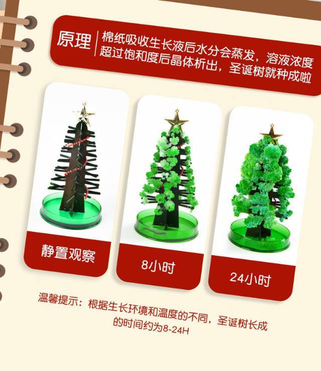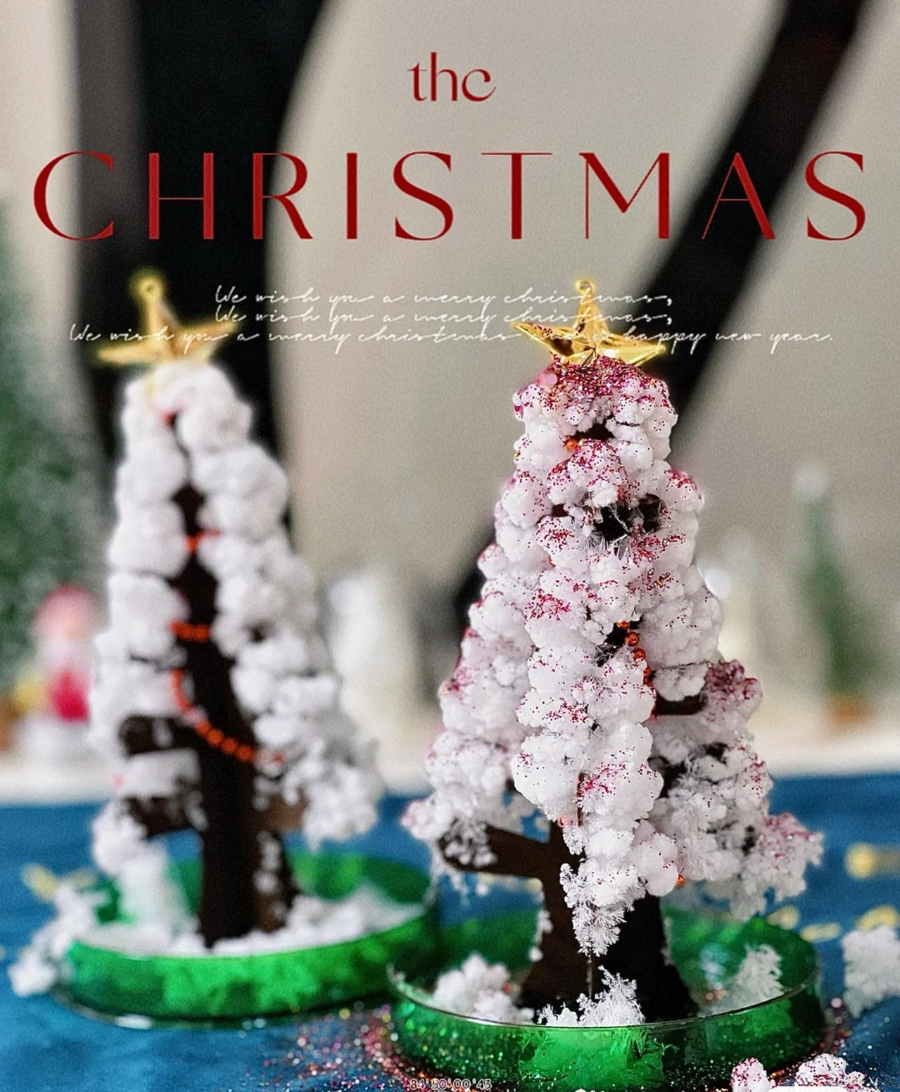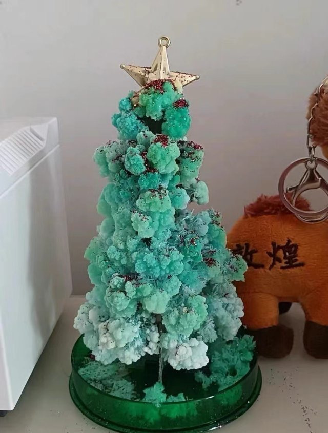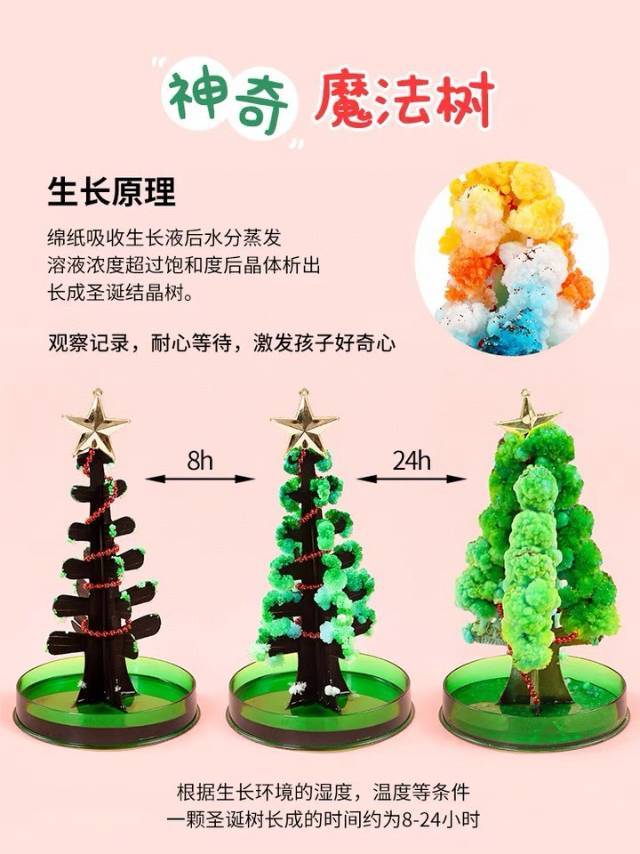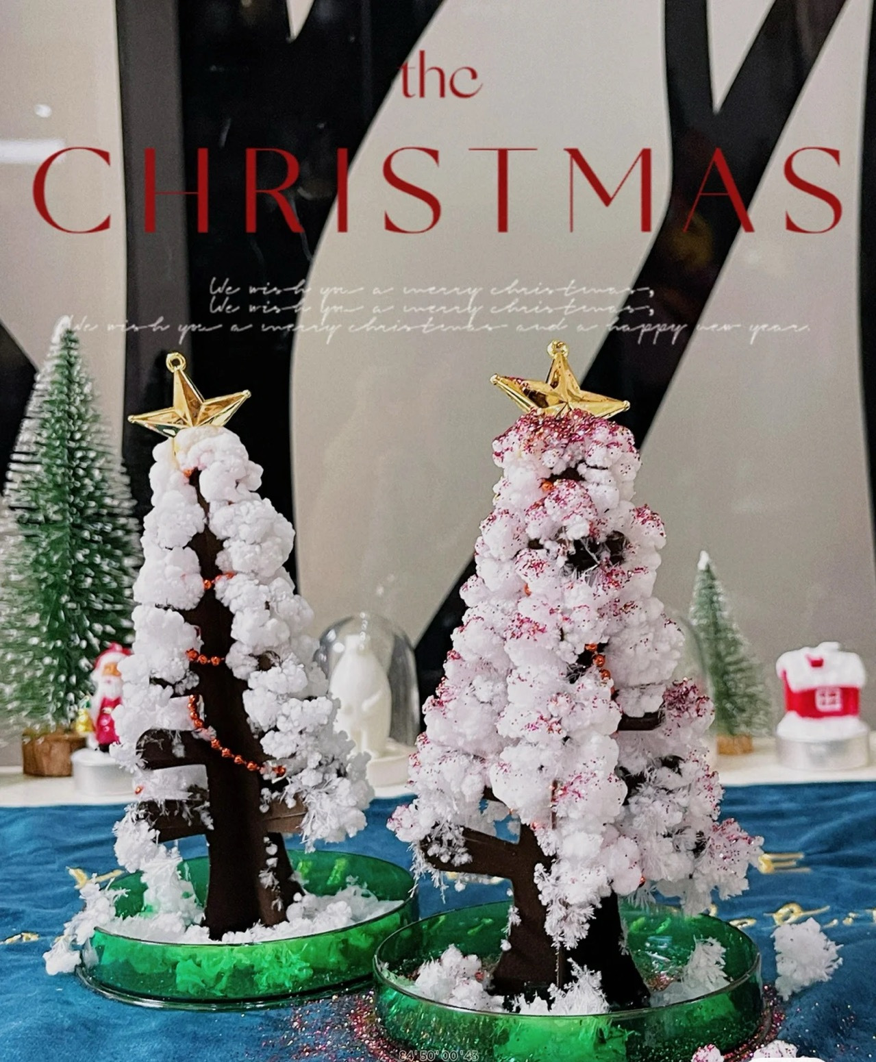 正是毛细作用和结晶原理才诞生了这奇妙的一夜开花的圣诞树,如此奇特有趣的现象就在一次次的操作过程中发生啦✨