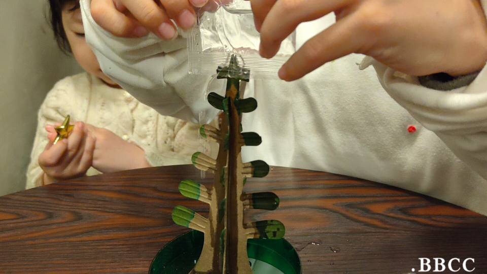 现在就让我来告诉你:纸片圣诞树是利用了毛细现象和结晶现象的原理哦!