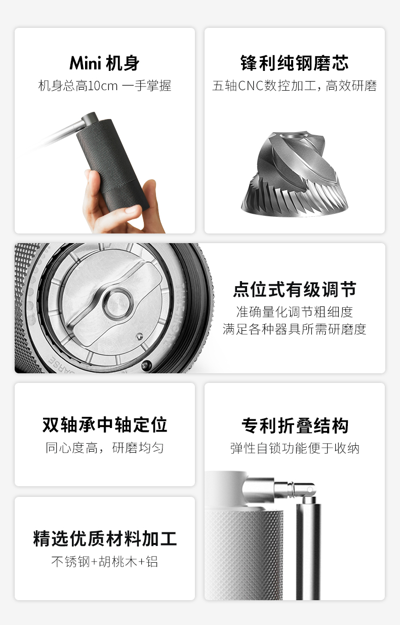 泰摩 栗子Nano便携式折叠手摇磨豆机 家用咖啡豆研磨器 中轴定位