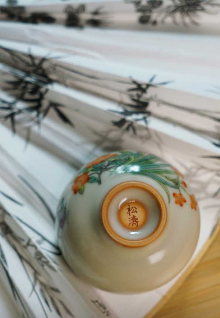 问鼎松涛彩绘哥窑浮白杯(水仙缥缈)(缺货)