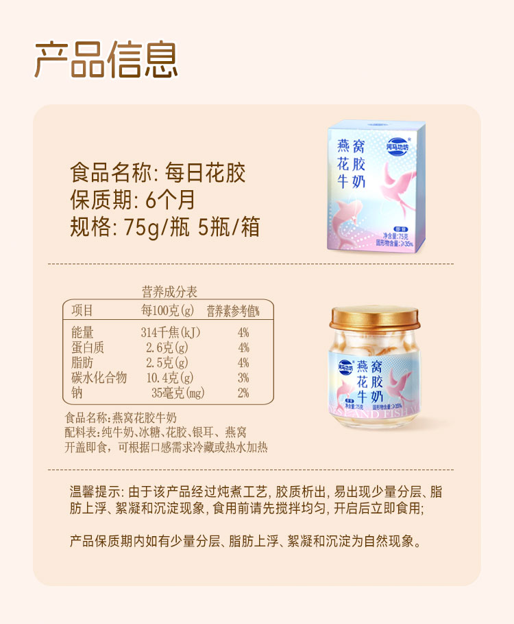 【品名】河马功坊燕窝花胶牛奶 75g/瓶 早餐速食粥 【规格】75g/瓶 【产地】国内 【保质期】6个月 【发货包装】独立包装 【发货地】广西、河南随机发 【发货快递】三通一达/礼盒装顺丰发货 【补邮费地区】新疆、西藏、内蒙古+30元/单 宁夏、甘肃、青海、黑龙江、吉林、辽宁+5元/单 【发货时效】48-72小时,周末节假日顺延 |