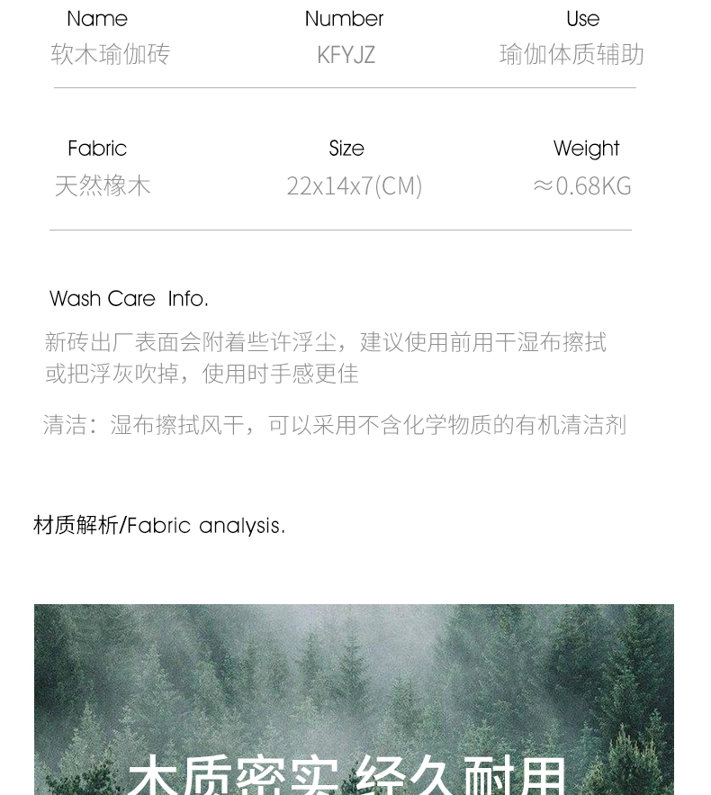 卡益天然软木瑜伽砖