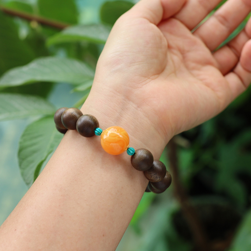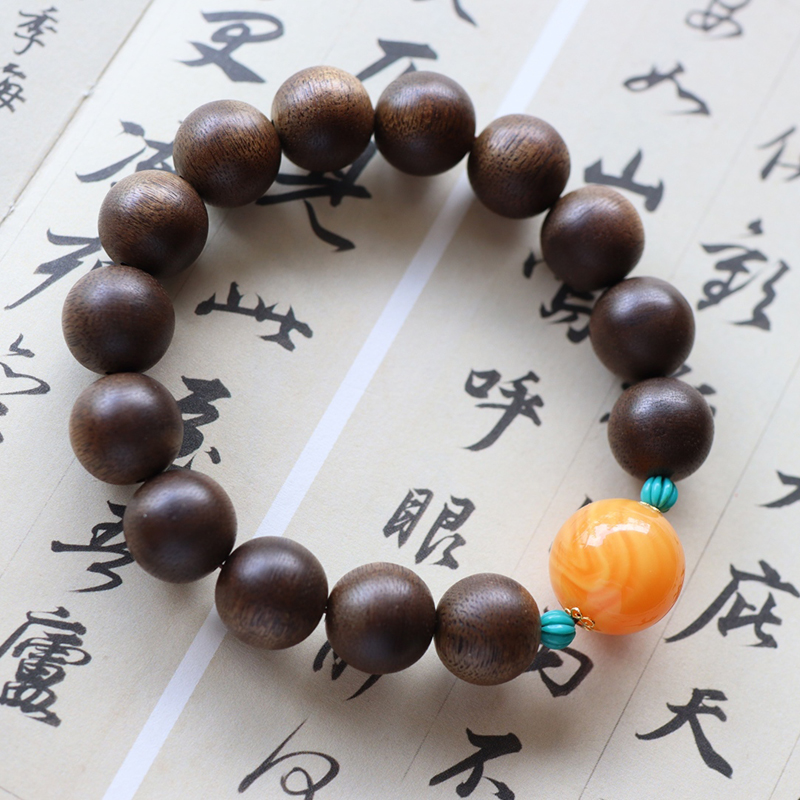 天然奇楠沉香手串,尺寸约12.6mm,原汁原味油色温润糯软,蜜甜韵足,花甜渗透,持久留香,带丝丝薄荷的清凉。搭配老花蜡枣珠,18k金花托,原矿绿松石南瓜珠。重约18.3克