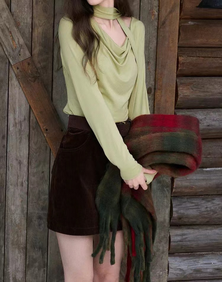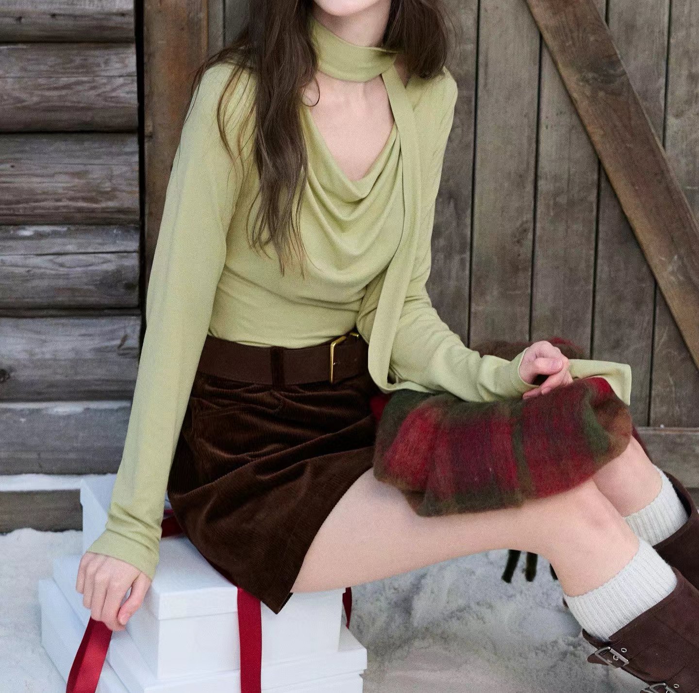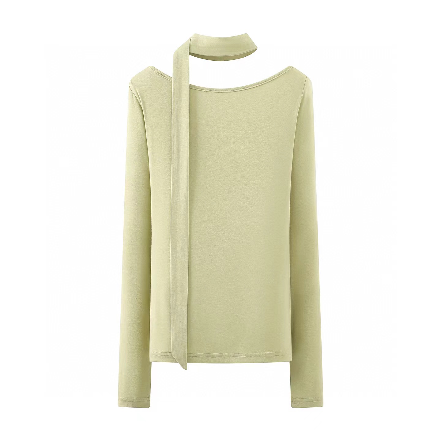 2026春季新款荡领T恤休闲长袖修身飘带上衣套头纯色,抹茶绿飘带荡领打底衫 | 温柔氛围感天花板。荡领+飘带设计:慵懒堆堆领自然垂坠,颈部飘带可系可散,打造灵动层次感,修饰颈部线条超绝。挖肩露颈小心机:后颈镂空搭配挂脖设计,打破基础款单调,甜酷氛围感拉满。修身显瘦剪裁:侧边自然褶皱藏肉不紧绷,贴合身形却不贴肤,勾勒曼妙曲线。采用高弹莫代尔混纺面料,软滑亲肤如云朵般触感,透气不闷汗,贴身穿巨舒服。垂坠感满分,不易起球变形,机洗也能保持版型。