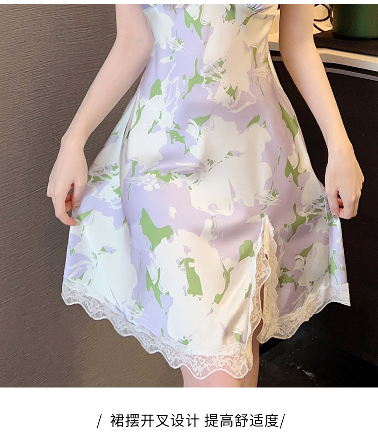 【又纯又欲❗️超美冰雪丝碎花裙】性感蕾丝,舒适到像裸穿,自带胸垫,免穿文胸内衣❗️新款带胸垫睡裙女士夏季吊带花边纯欲睡衣