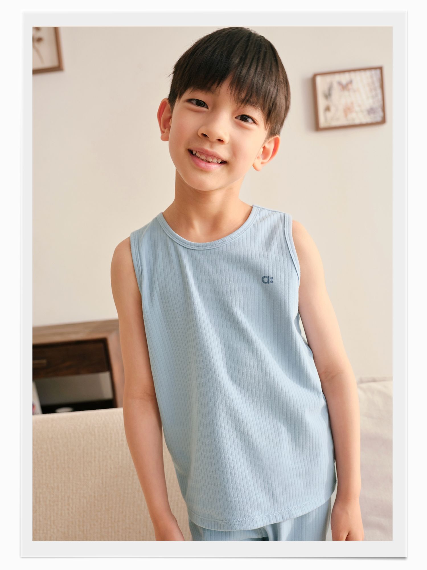 【秋Vol.1】幼岚童装「王牌桉树皮」透汽罗纹小背心24秋季新款儿童家居背心ZY