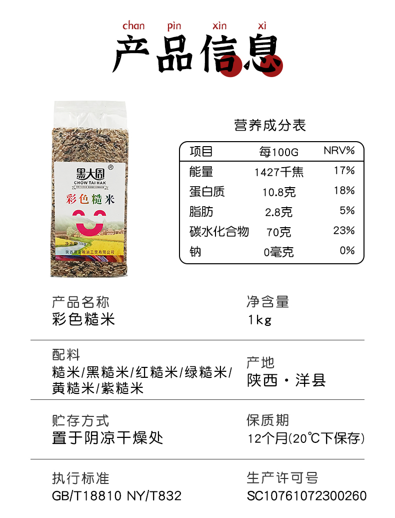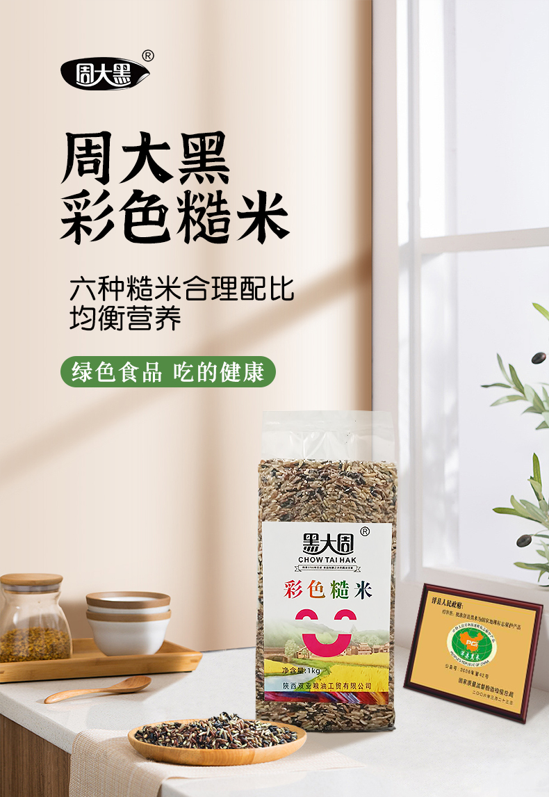 周大黑 陕西特产 洋县彩色糙米五谷杂粮红米黑米糙米粗粮1kg