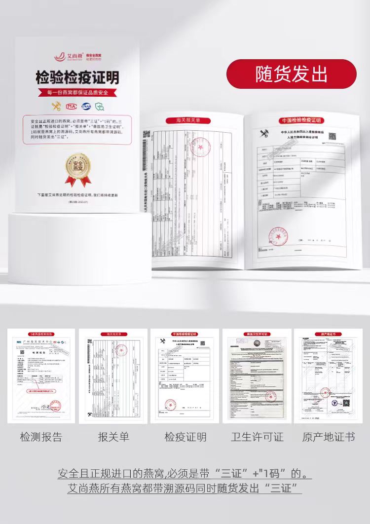 艾尚燕干燕窝干盏50g印尼进口溯源5星级孕妇女性官方旗舰店正品