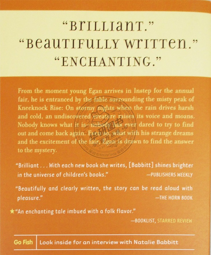 From the moment young Egan arrives in Instep for the annual fair, he is entranced by the fable surrounding the misty peak of Kneeknock Rise: On stormy nights when the rain drives harsh and cold, an undiscovered creature raises its voice and moans. Nobody knows what it is―nobody has ever dared to try to find out and come back again. Before long, Egan is climbing the Rise to find an answer to the mystery.