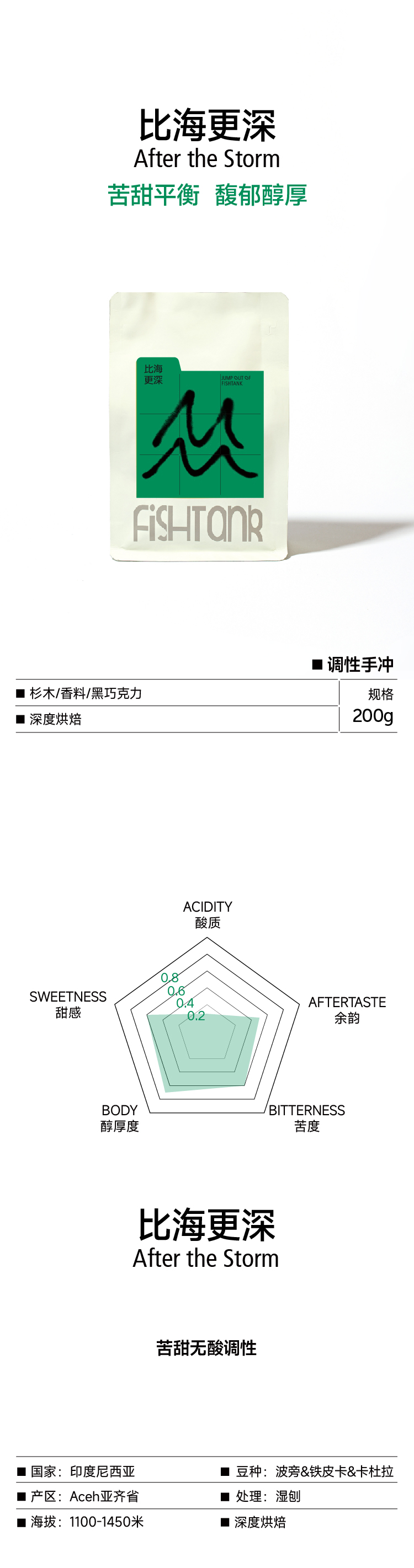 比海更深 调性拼配手冲咖啡豆 200g 苦甜无酸调