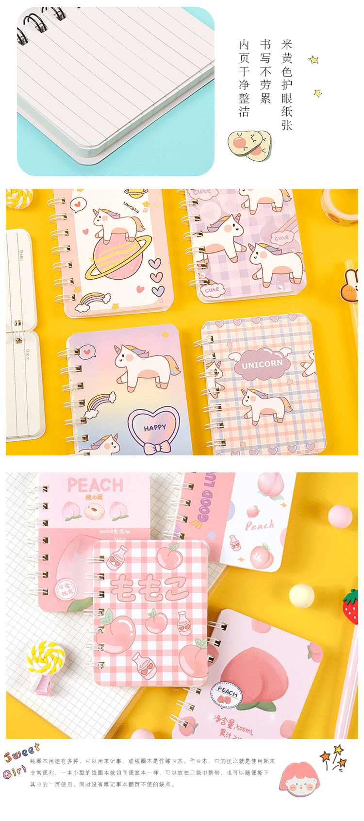 A7线圈本卡通学生迷你便携口袋本子办公侧翻记事本笔记本 50g