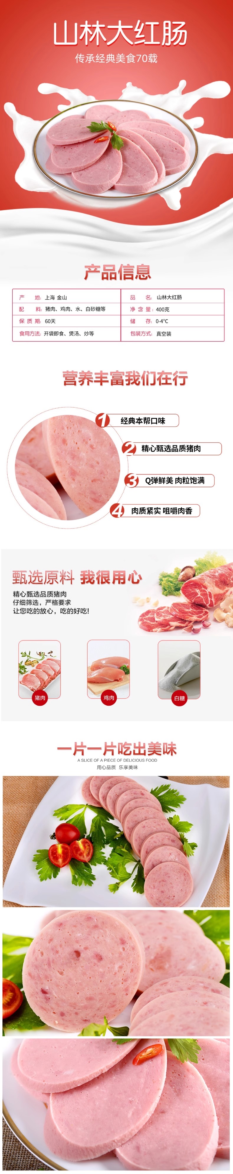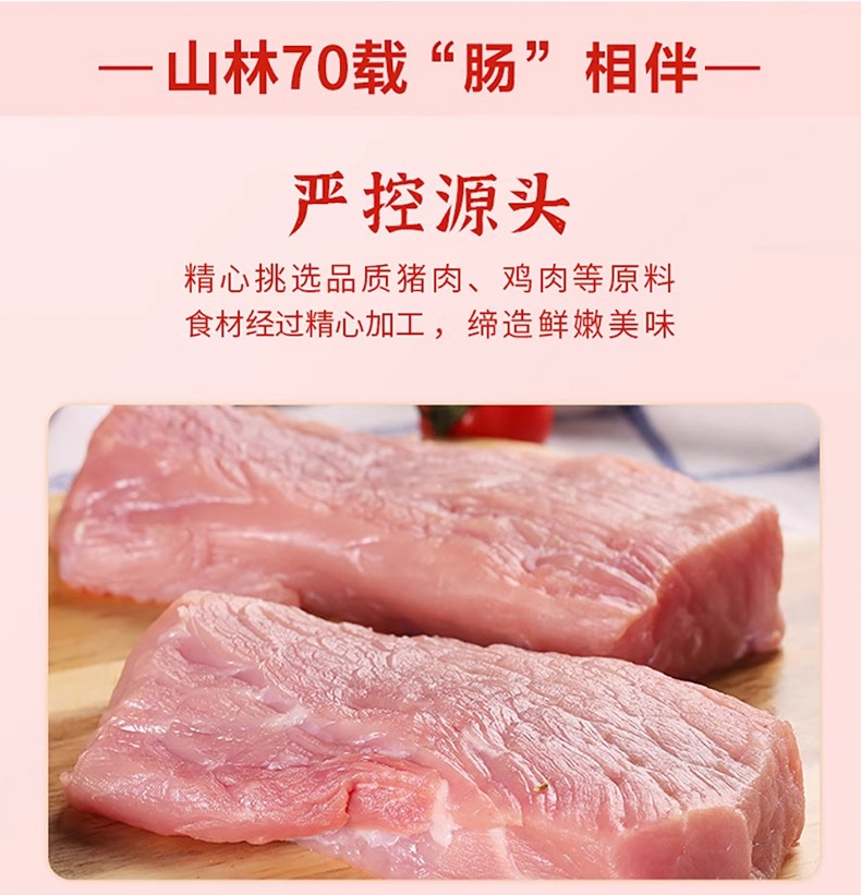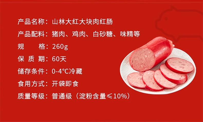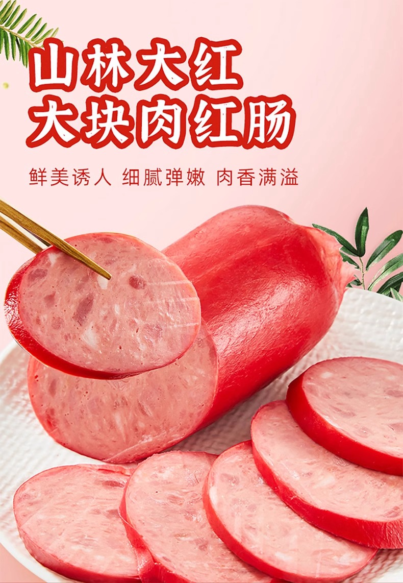 山林大红钜惠套餐A「一级真空红肠(绿标)400g/根*2+大块肉红肠260g(金标)/根*2+山林咸草鸡500g/袋*1+山林鸭肫肝200g/袋*1」