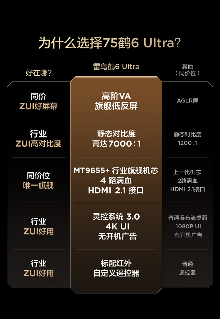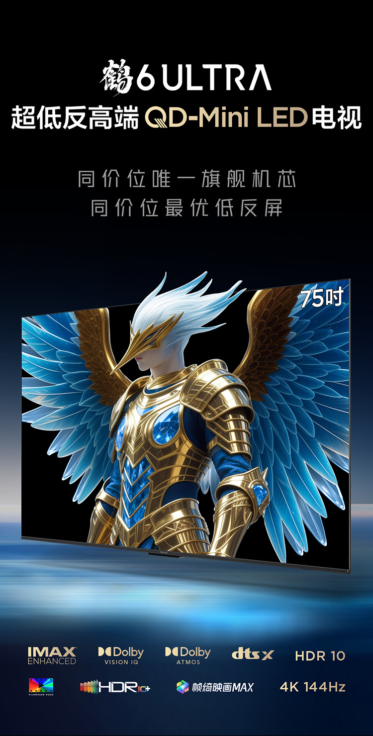 【FFALCON雷鸟】鹤6 Ultra 25款 75英寸 MiniLED 超高对比度 一级能效智能电视机 75英寸 无开机广告 75S595C Ultra