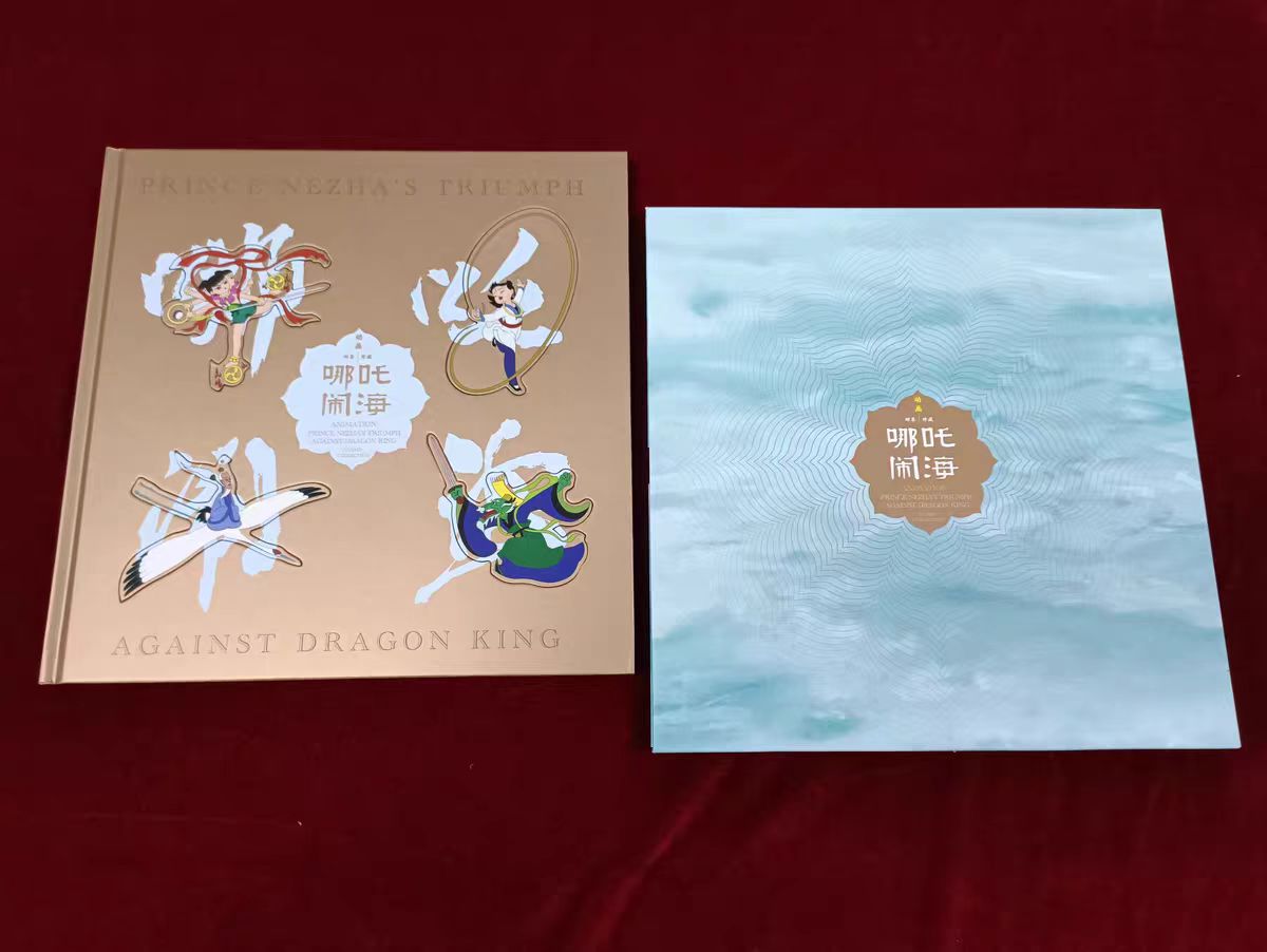 值得一提的是,官方赠送的一套四枚《哪吒闹海》冰箱贴,就藏在珍藏册的封面里,可以用手指直接扣下来使用或者放回去,非常有创意的设计!