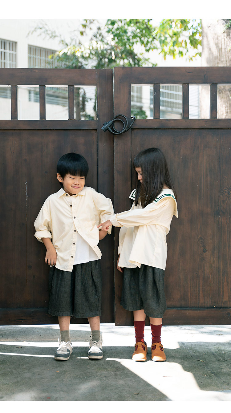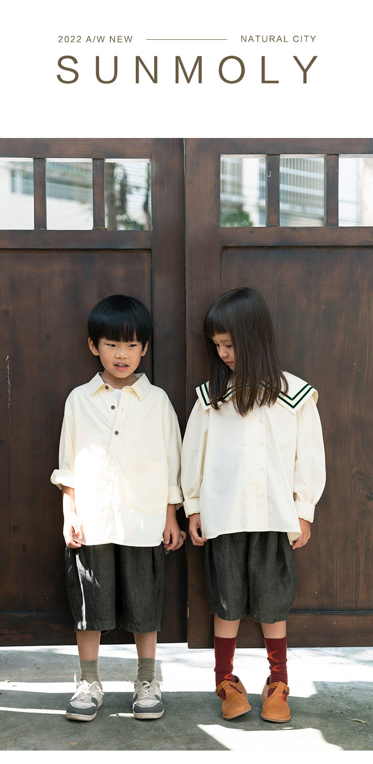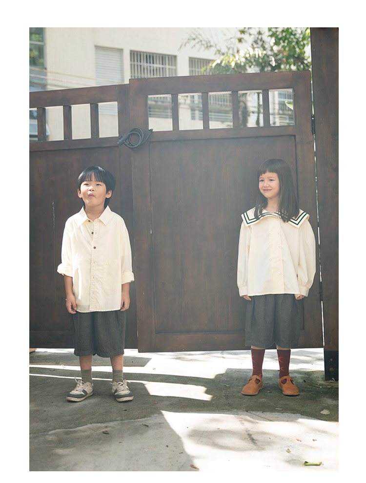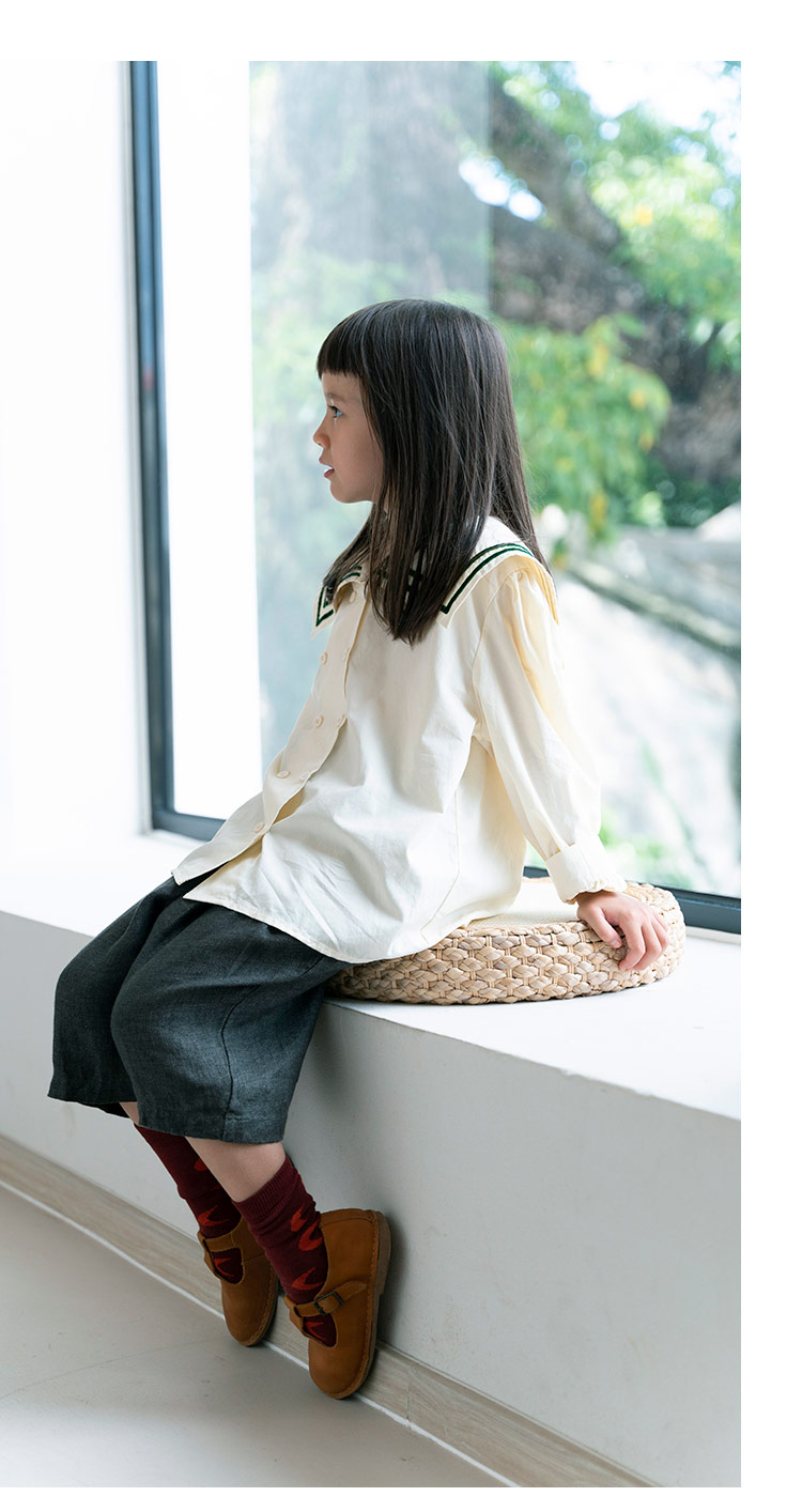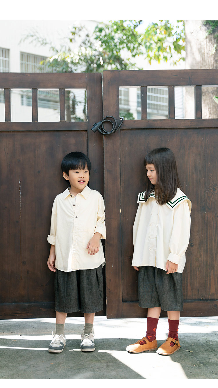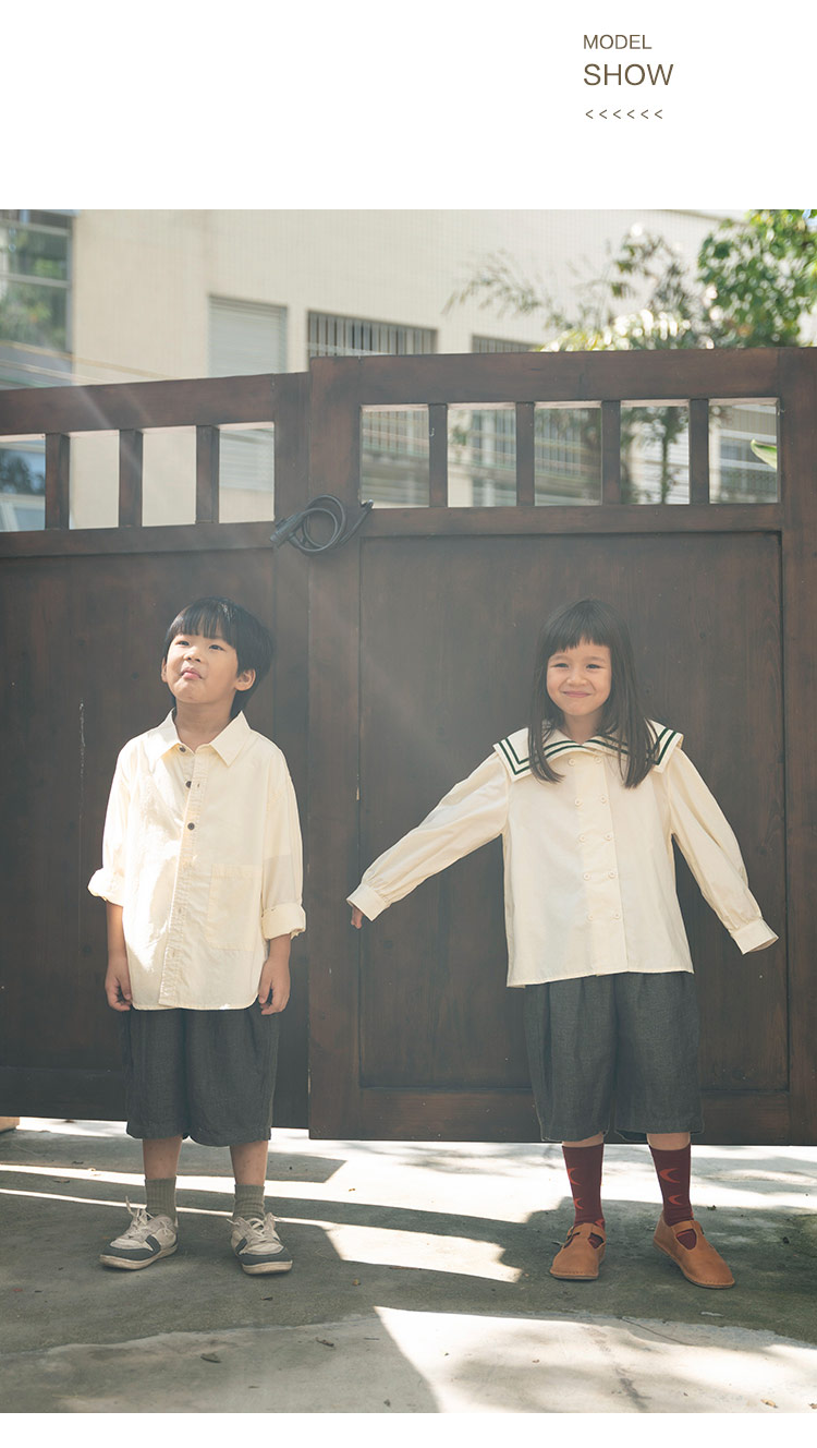 三茉童装/M178/纯棉洋气时髦方领学院风女童衬衫