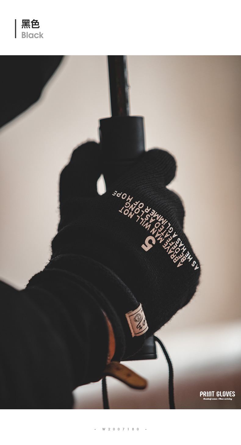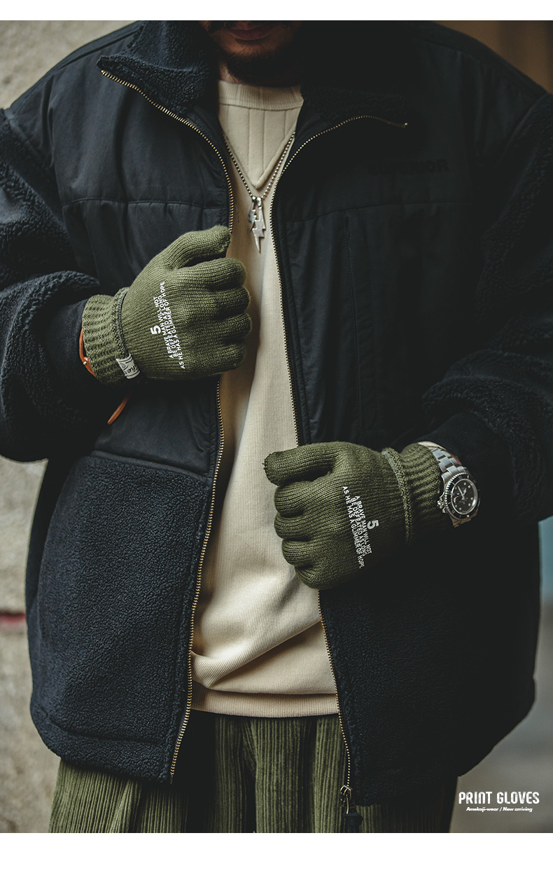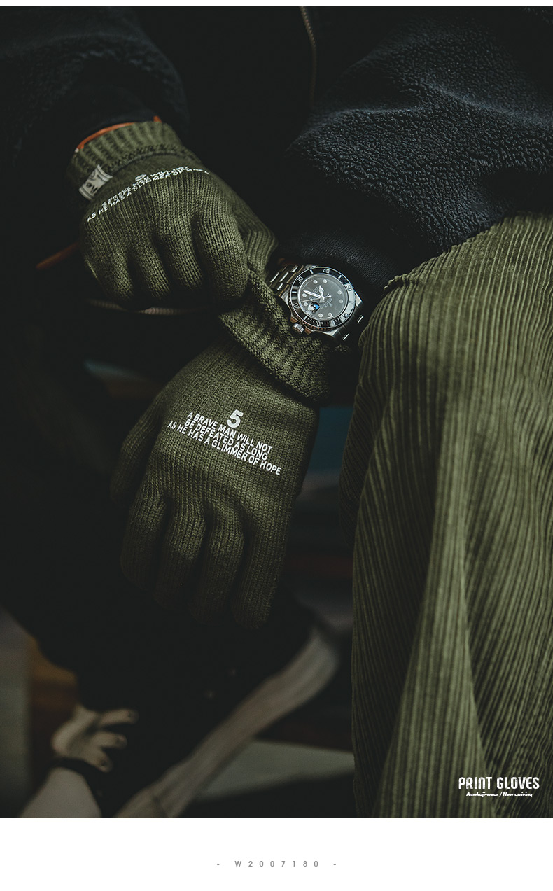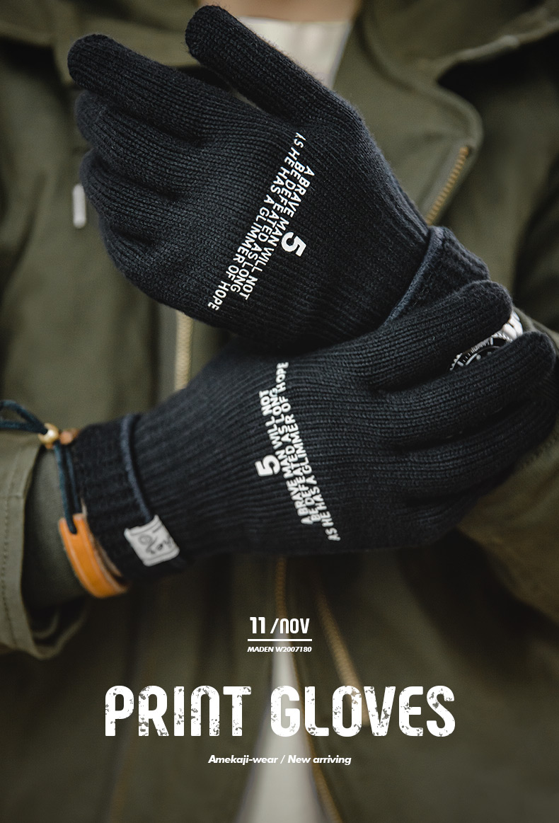 工装优选美式复古针织印花全指手套冬季骑行男