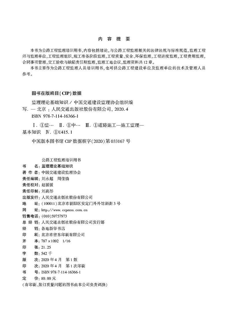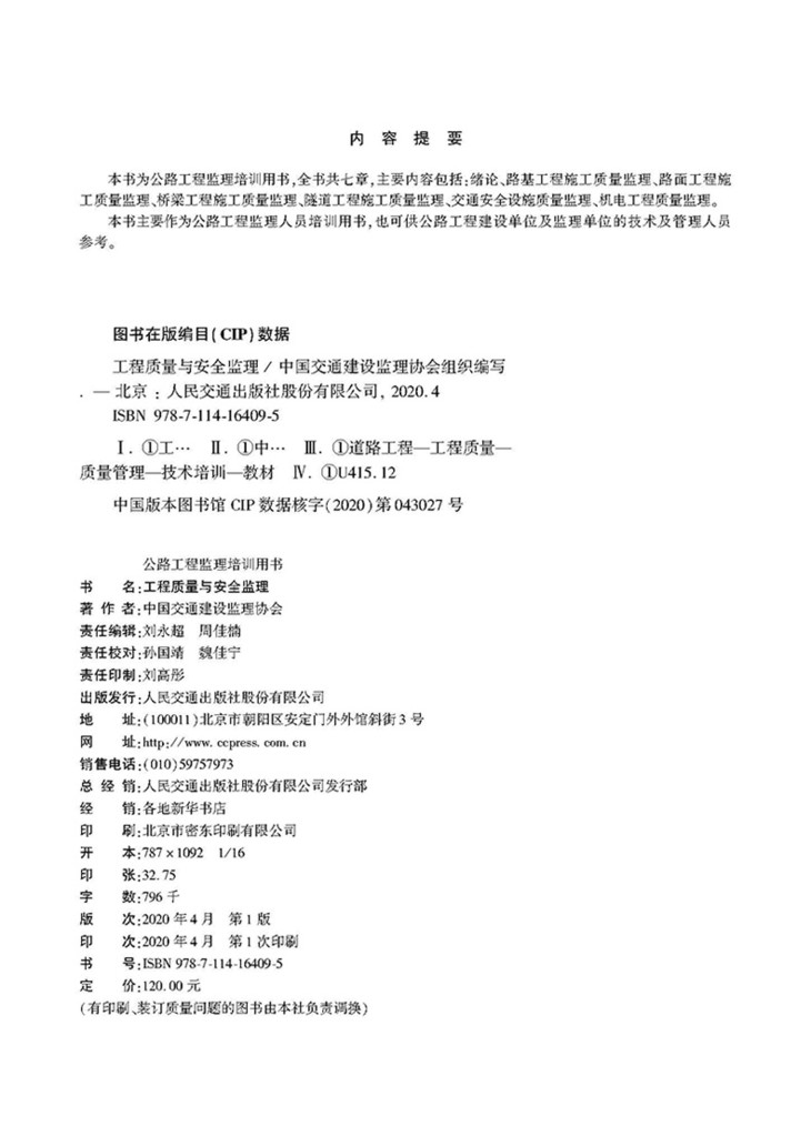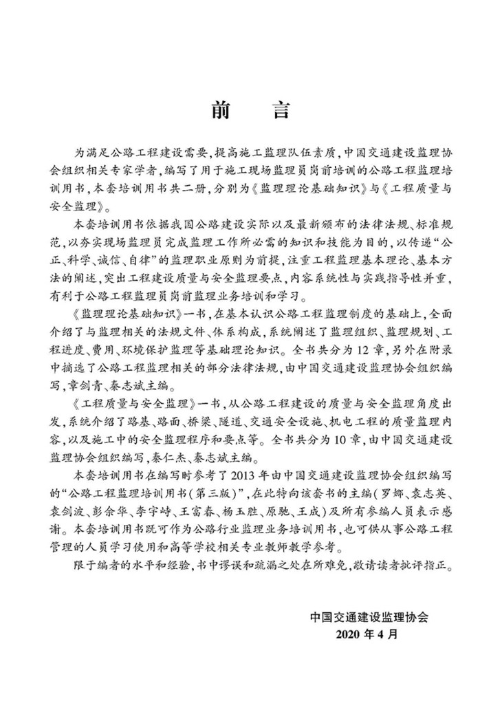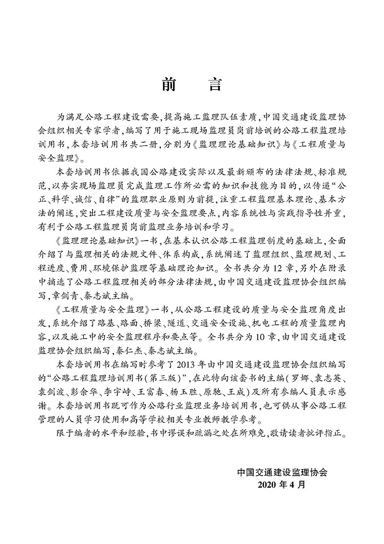 2020公路工程监理培训用书-工程质量与安全监理+监理理论基础知识