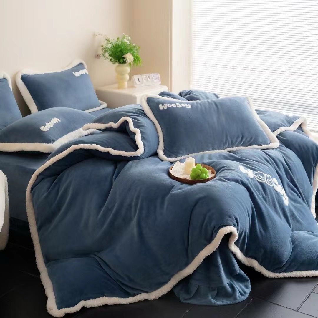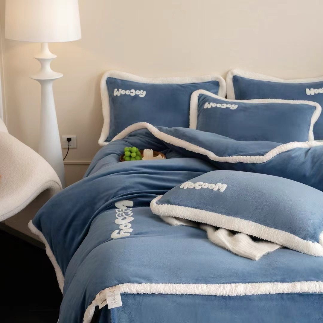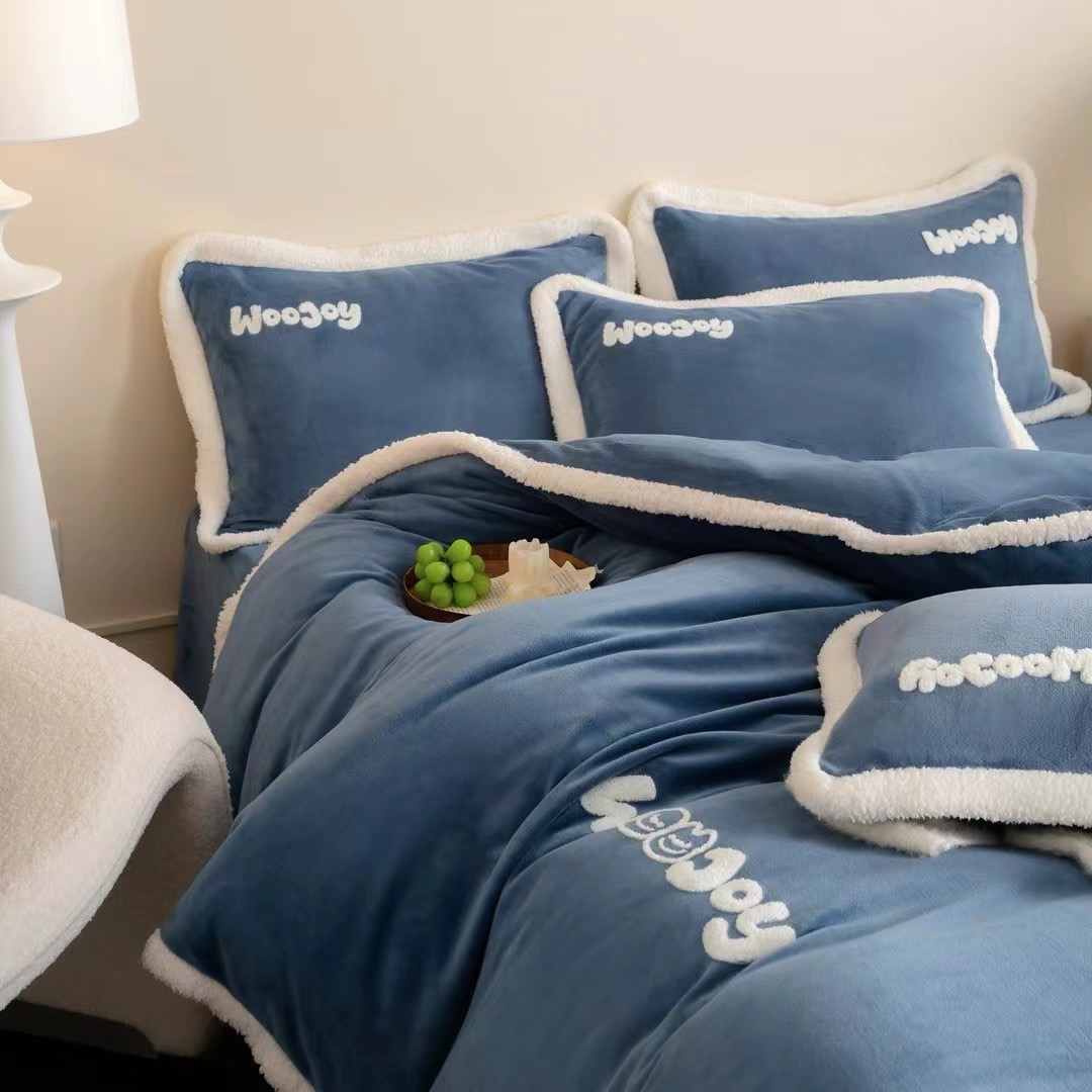 🔥韩国进口牛奶绒拼接羊驼绒保暖四件套,原单600多套