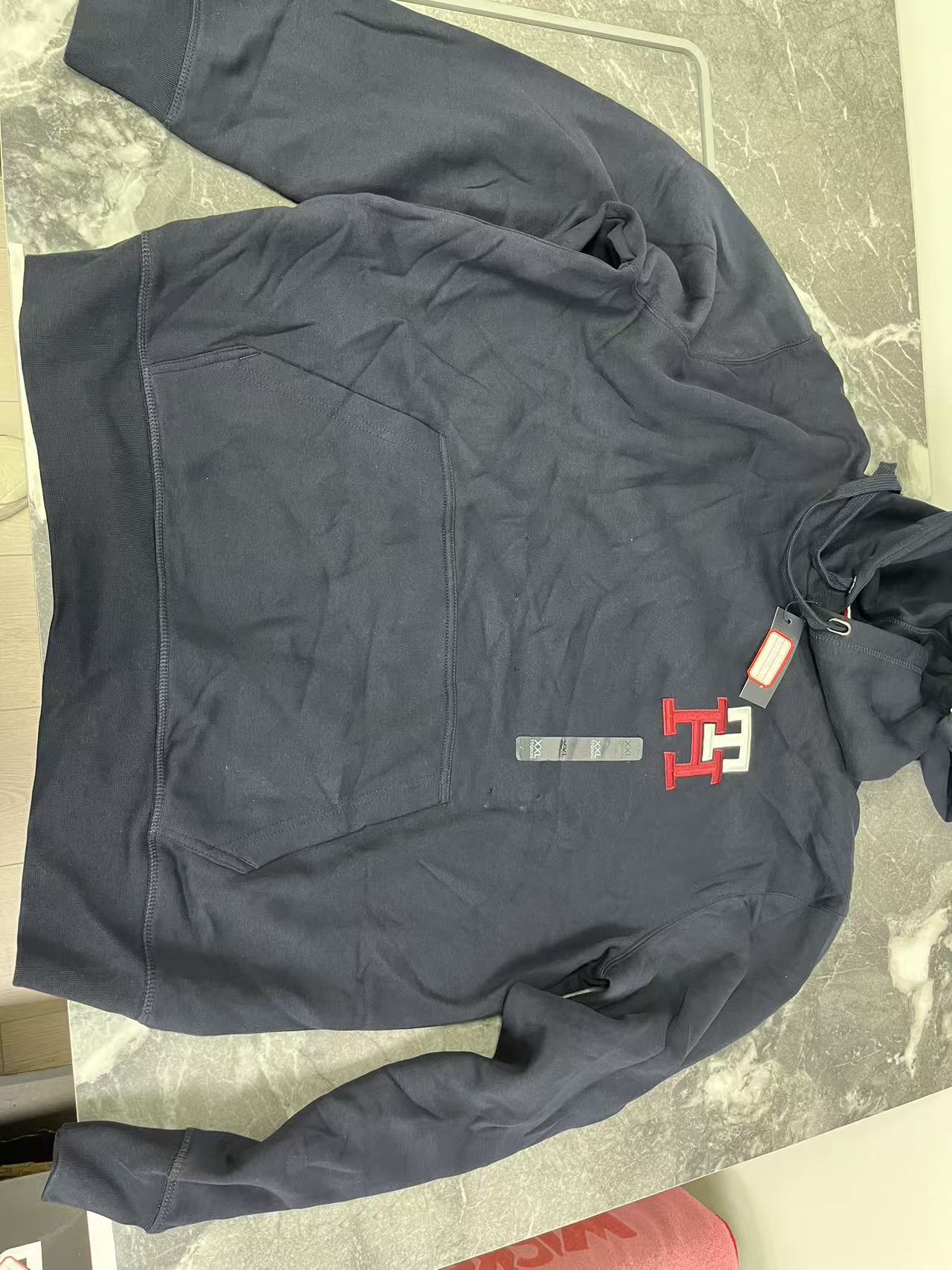 瑕疵Tommy Hilfiger/汤米 男士内加绒保暖刺绣标袋鼠兜抽绳连帽卫衣