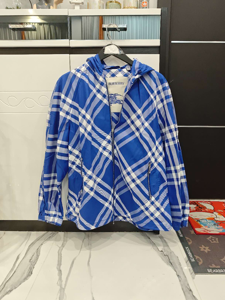微瑕不退不换 BUR*E**Y/巴*莉 男士时尚格纹拉链连帽长袖外套