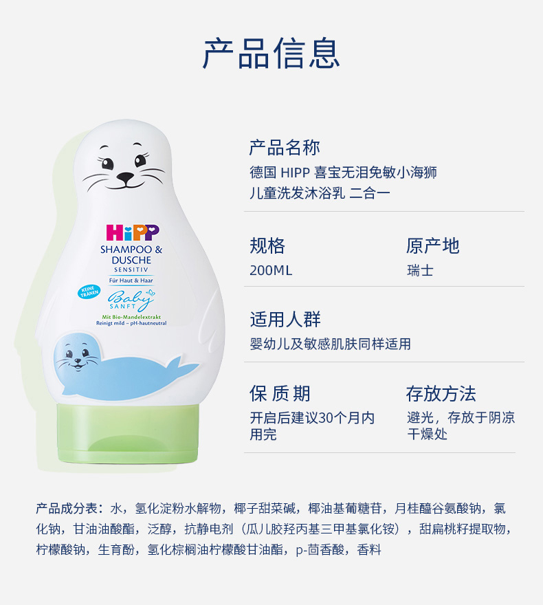 【保税区包邮直发】德国 喜宝 小海狮洗发沐浴乳 200ml