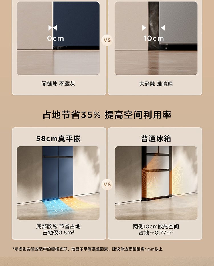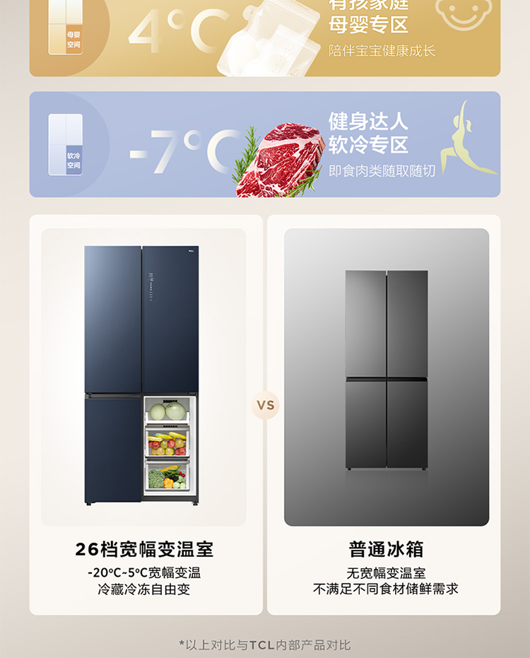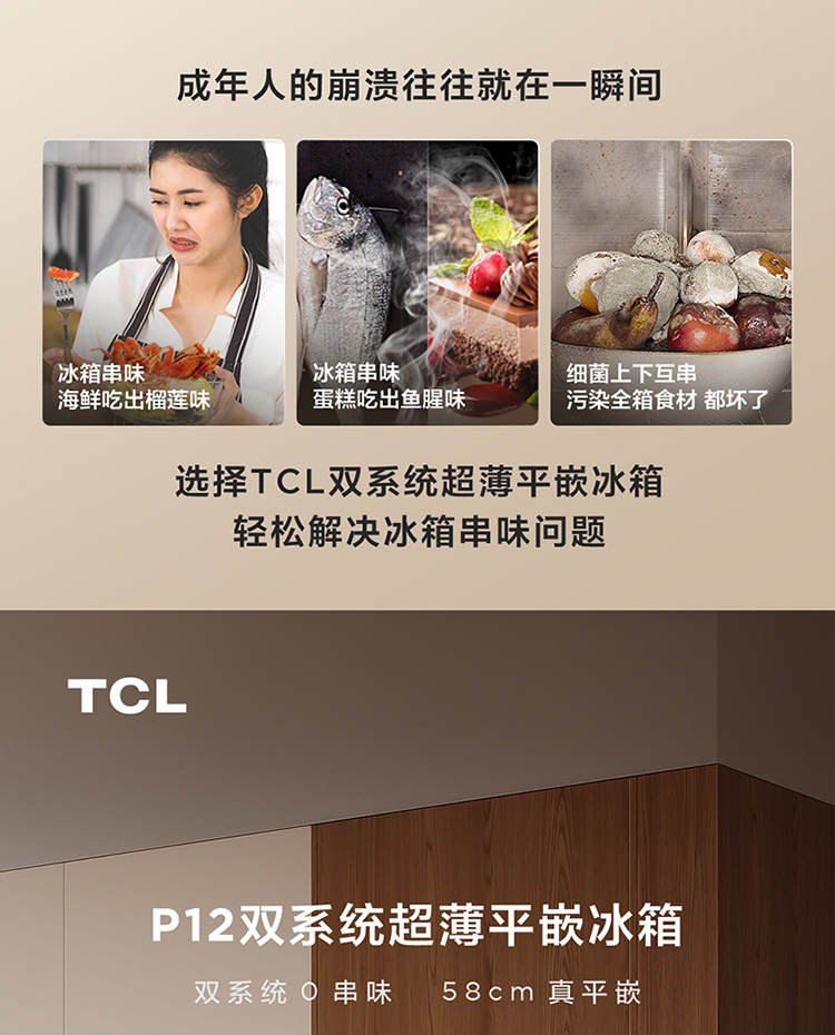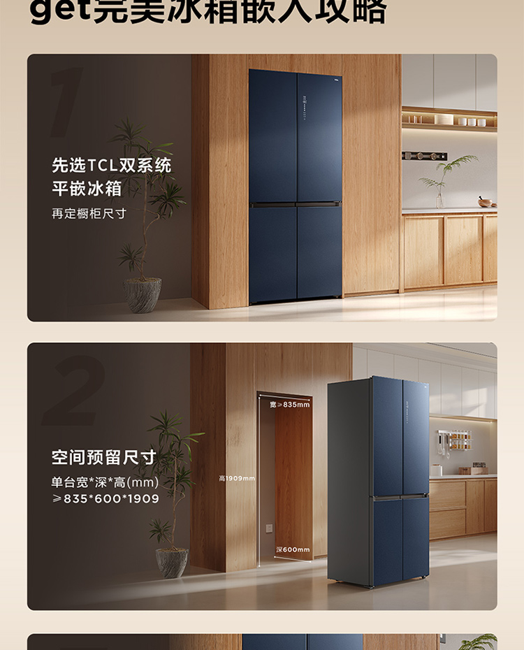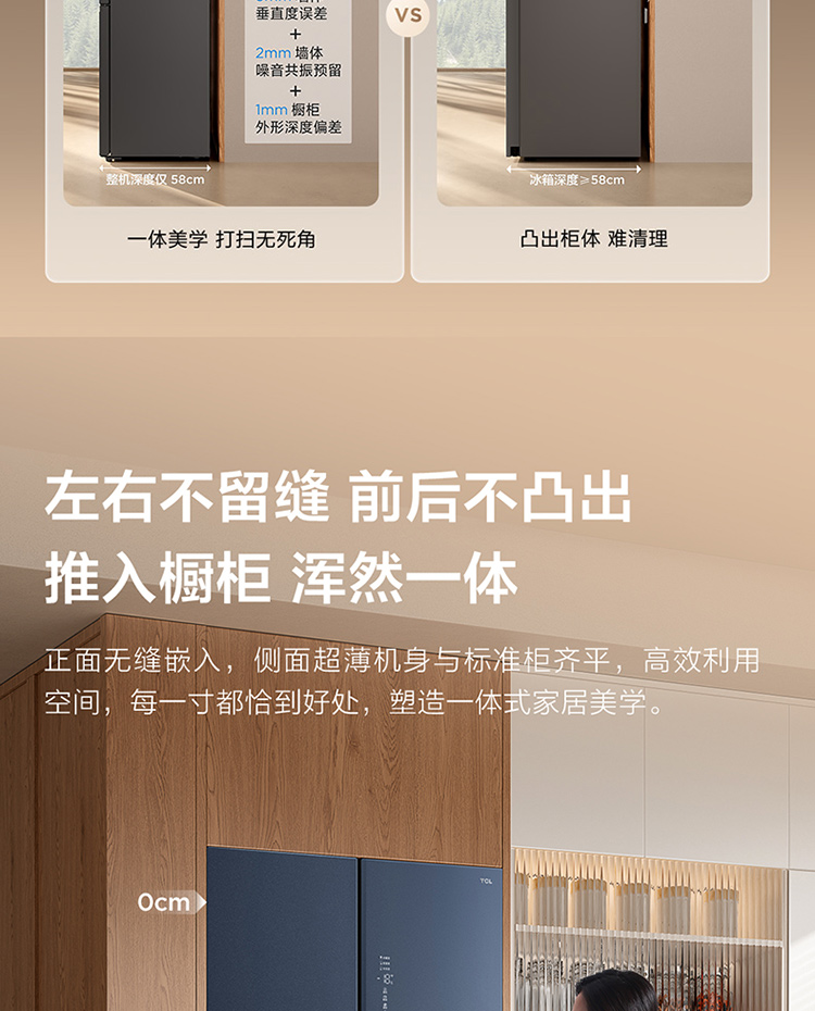 【TCL冰箱】461升独立双系统平嵌冰箱 58cm超薄 超宽幅变温 -40℃晶态膜锁鲜 R461P12-UQS