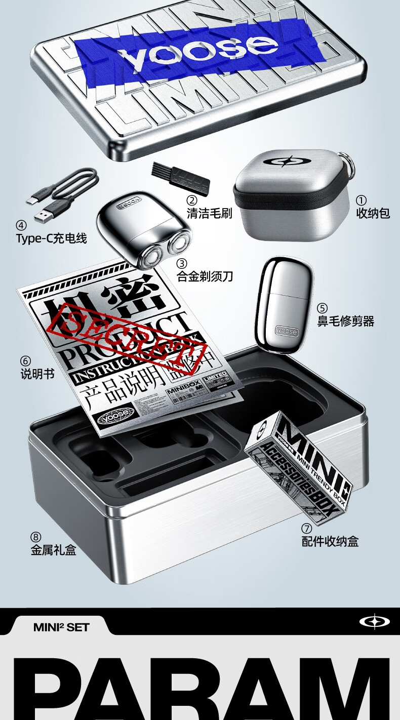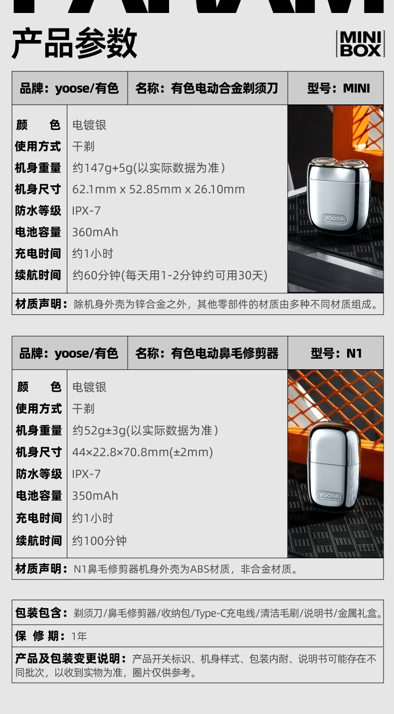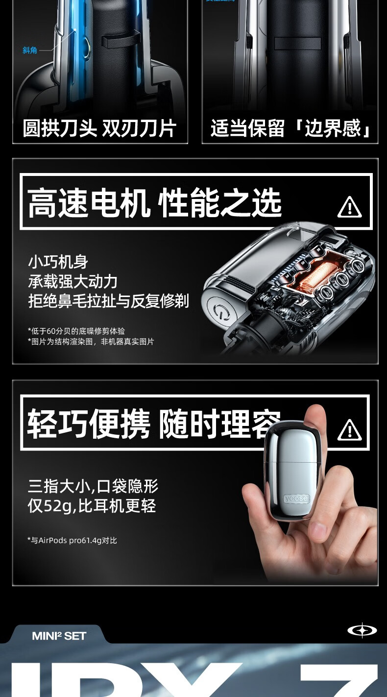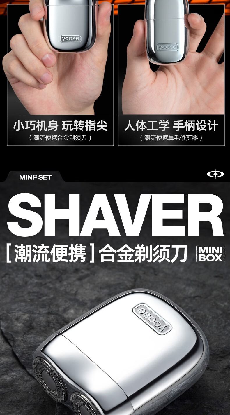 有色(yoose)电动剃须刀 迷你便携男士刮胡刀鼻毛修剪器二合一 生日礼物送男友老公