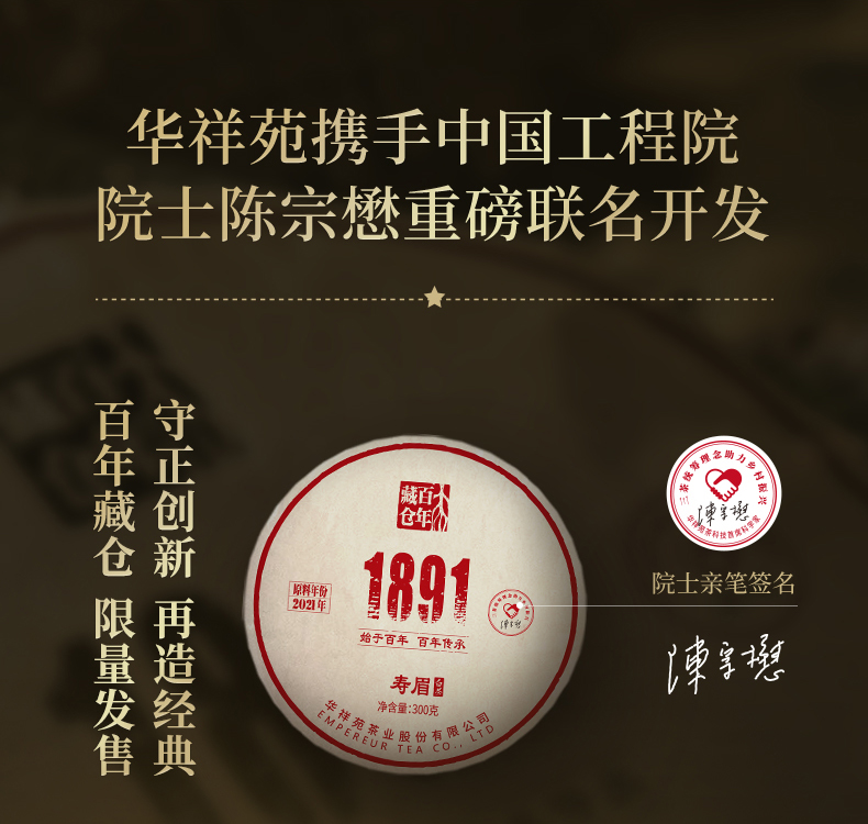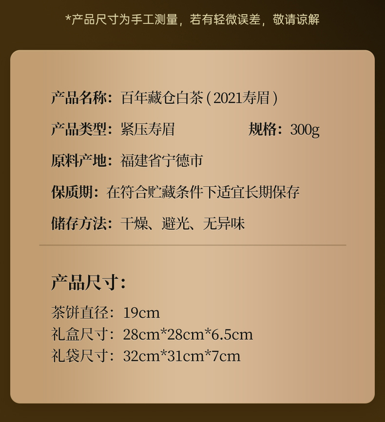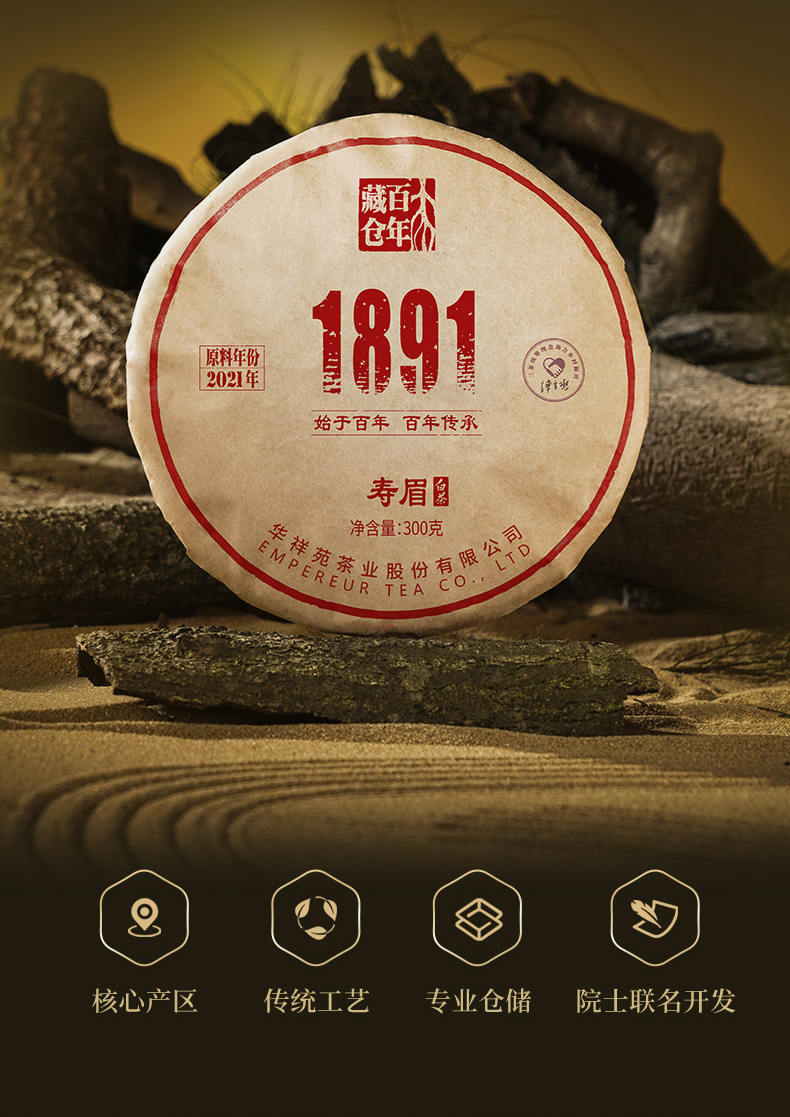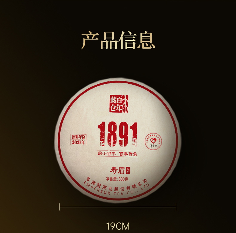 【3年典藏重磅上市】华祥苑-1891寿眉白茶饼300g(2021年)【配礼盒】